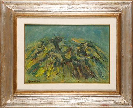 MANDELLI POMPILIO (1912 - 2006) Collina. 1985. Olio su tela . Cm 50,00 x 35,00. Firma in basso a sinistra. Al retro titolo, firma e anno. Cornice presente