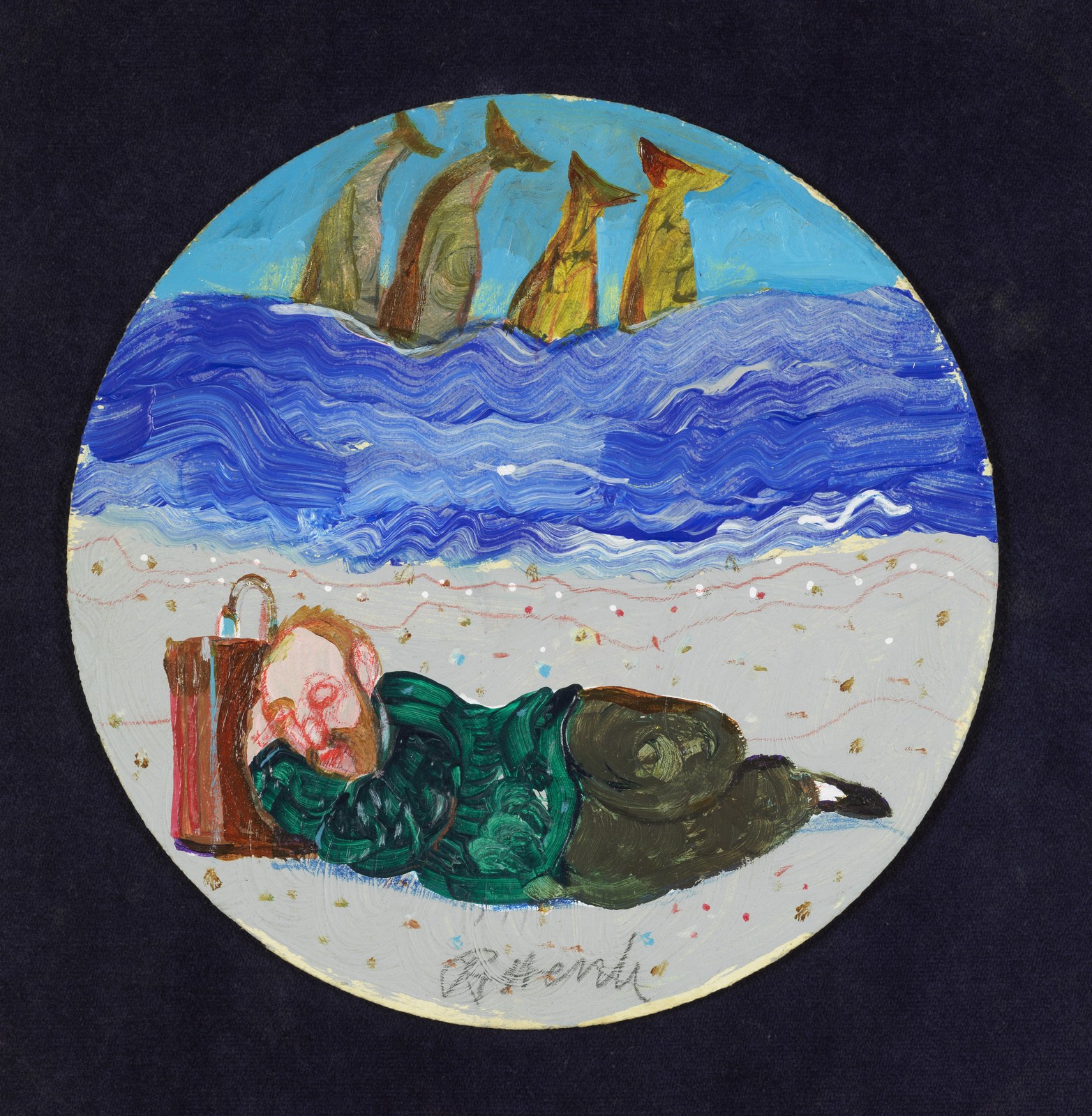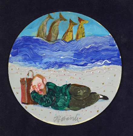 POSSENTI ANTONIO (n. 1933) Senza titolo. Olio su tavola. Cm 18,00 x 18,00. Firma in basso al centro. Autentica dell'artista su fotografia. Presenti difetti. Cornice presente