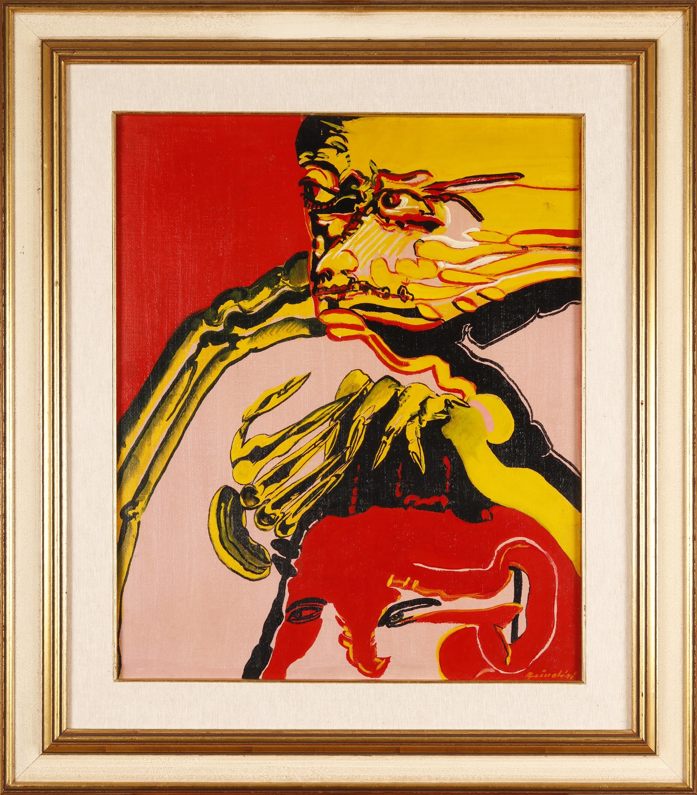 BRINDISI REMO (1918 - 1996) Senza titolo. 1975. Olio su tela . Cm 50,00 x 60,00. Firma in basso a destra. Al retro retro firma, anno e dedica ad Ignazio Vena. Provenienza: Collezione Vena, Cosenza. Presenti difetti. Cornice presente