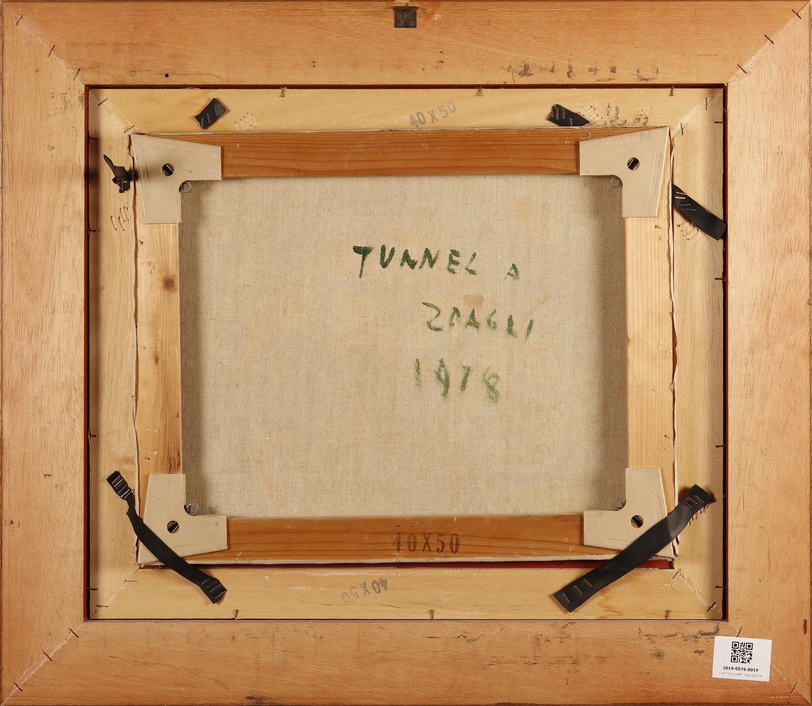 PAULUCCI ENRICO (1901 - 1999) Tunnel a Zoagli. 1978. Olio su tela . Cm 50,00 x 40,00. Firma in basso a destra. Al retro titolo e anno.Autentica dell'artista su fotografia. Pubblicazione: Enrico Paulucci a cura di Marco Rosci, Palazzo della Società Promotrice delle Belle Arti, Torino, 10 Maggio - 5 Giugno 1979, tav. 181. Cornice presente