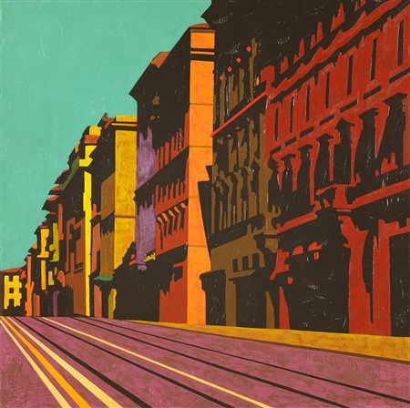 REGGIO MAURO (n. 1971) Esquilino. 2008. Olio su tela . Cm 50,00 x 50,00. Al retro titolo, firma e anno. Certificato di garanzia DL Arte, Milano. Lievi difetti.