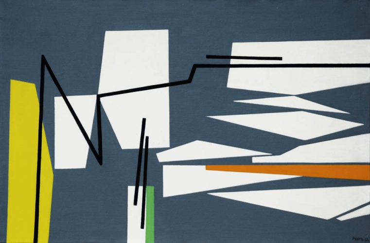 IDEO PANTALEONI 1904 - 1993 " Composizione ", 1954 Olio su tela, cm. 54 x 81 Firmato e datato in basso a destra Prov. Collezione Privata