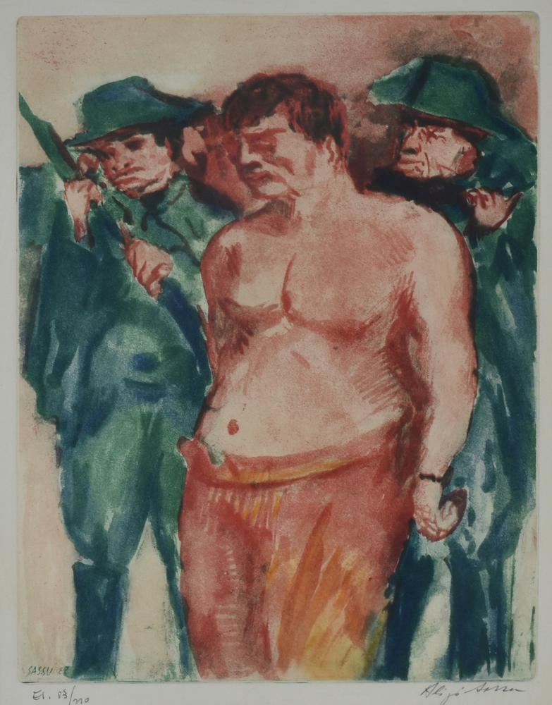 Sassu Aligi FUCILAZIONE NELLE ASTURIE acquatinta su carta, cm 46x40 (lastra...
