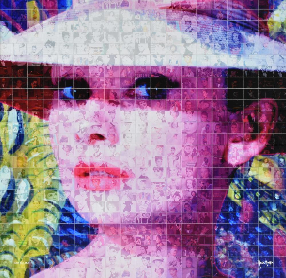Murgia Maria AUDREY HEPBURN fotomontaggio su kapafix, cm 80x80 sul fronte:...