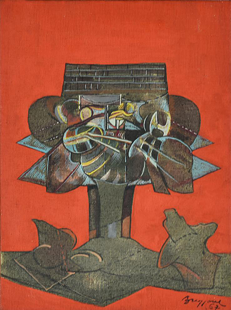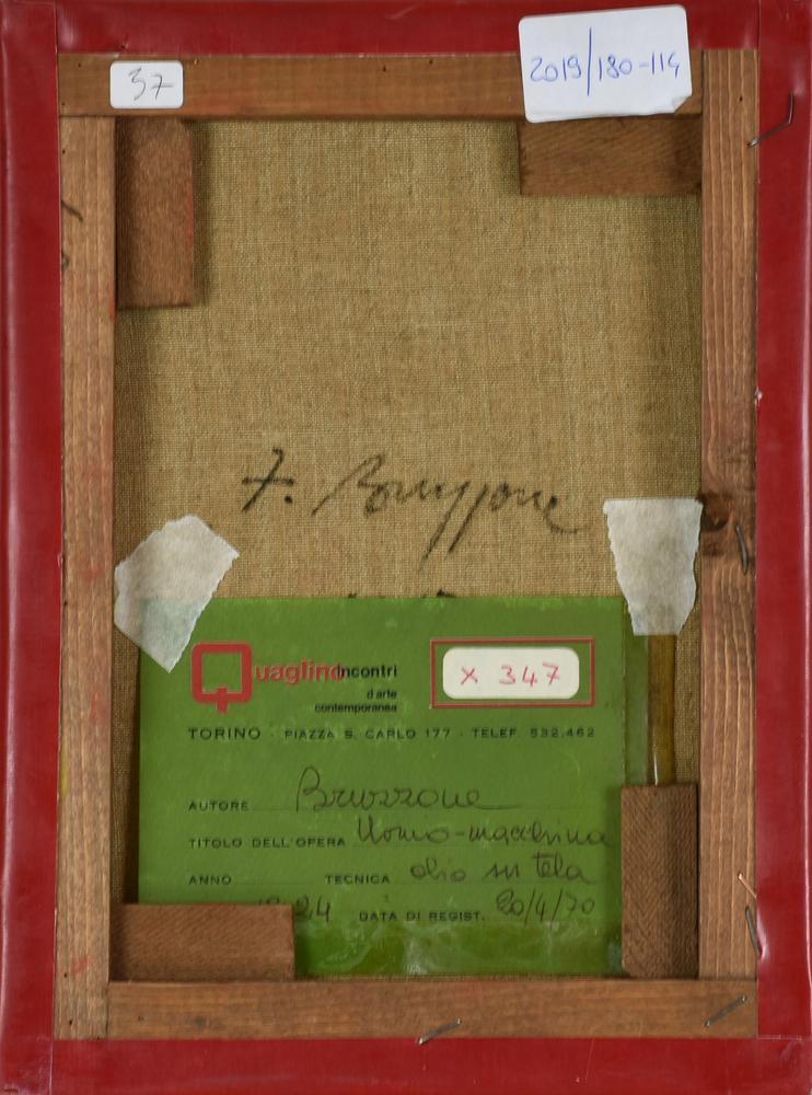 Bruzzone Franco UOMO MACCHINA olio su tela, cm 24x18 sul fronte: firma e data...