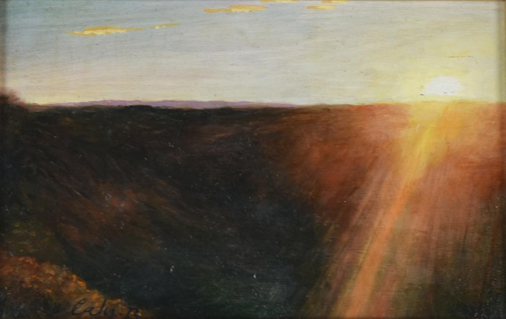Calvi di Bergolo Gregorio TRAMONTO A SAN CARLO olio su cartone, cm 14x22 sul...