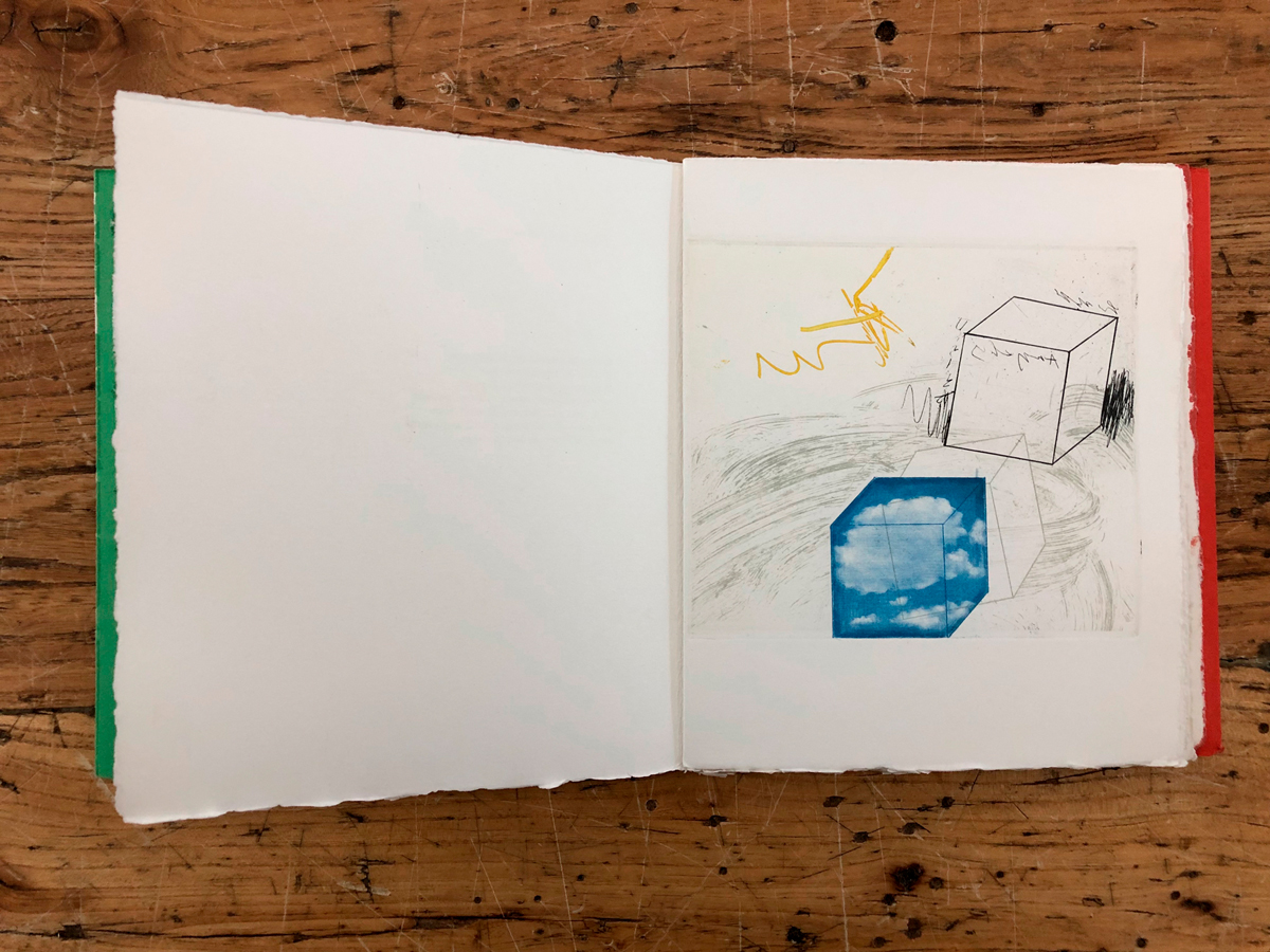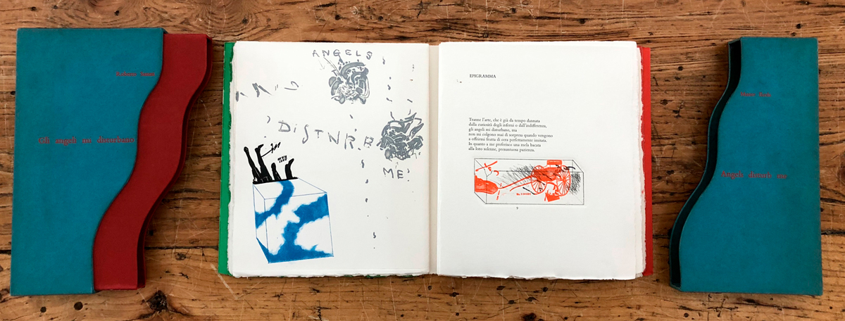 Cartella rigida contenente 9 incisioni e collages di Masuo Ikeda accompagnate da poesia di Roberto Sanesi tradotte in inglese da Alexander William