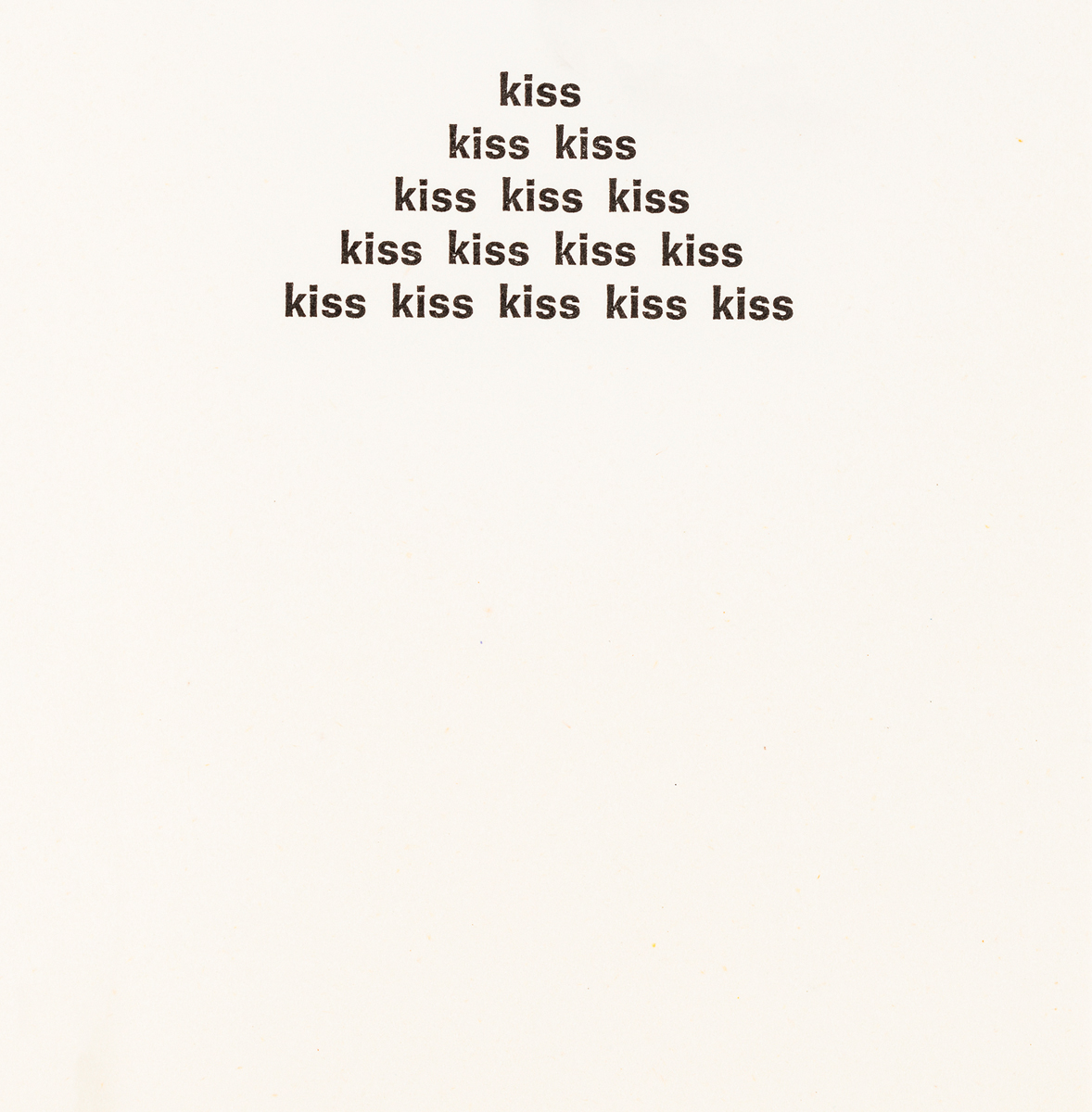 Libro d'arte illustrato (con il susseguirsi delle pagine la parola 'Kiss' viene ripetuta sino ad occupare l'intera pagina)