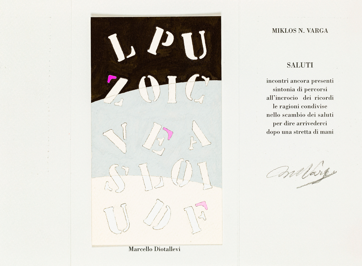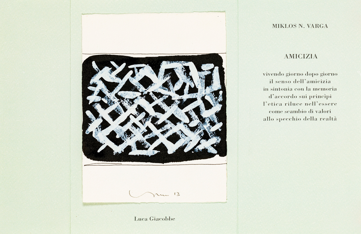 L'opera è applicata all'interno di un biglietto augurale, con poesia di Miklos N. Varga, curato dalle Edizioni Scoglio di Quarto, Milano