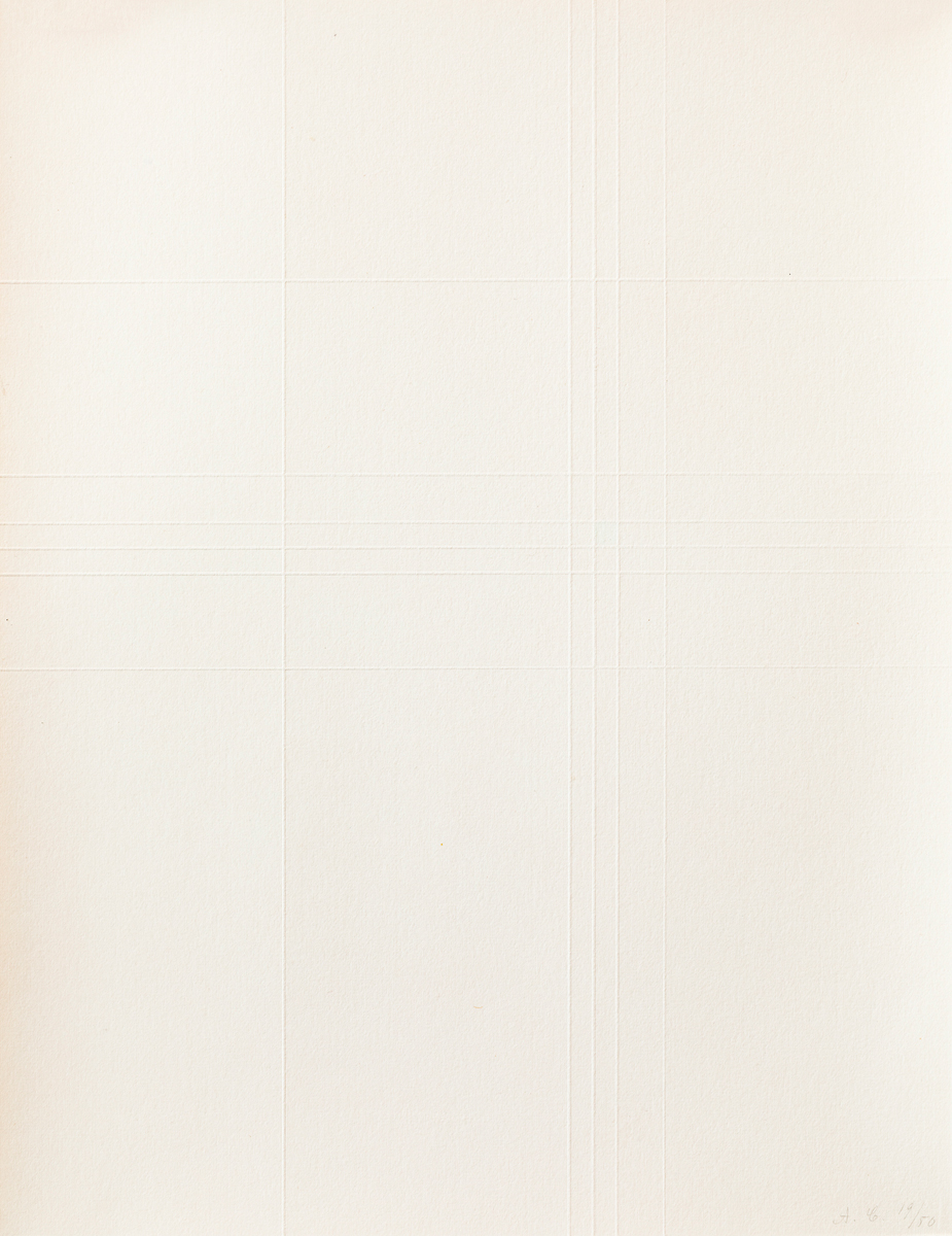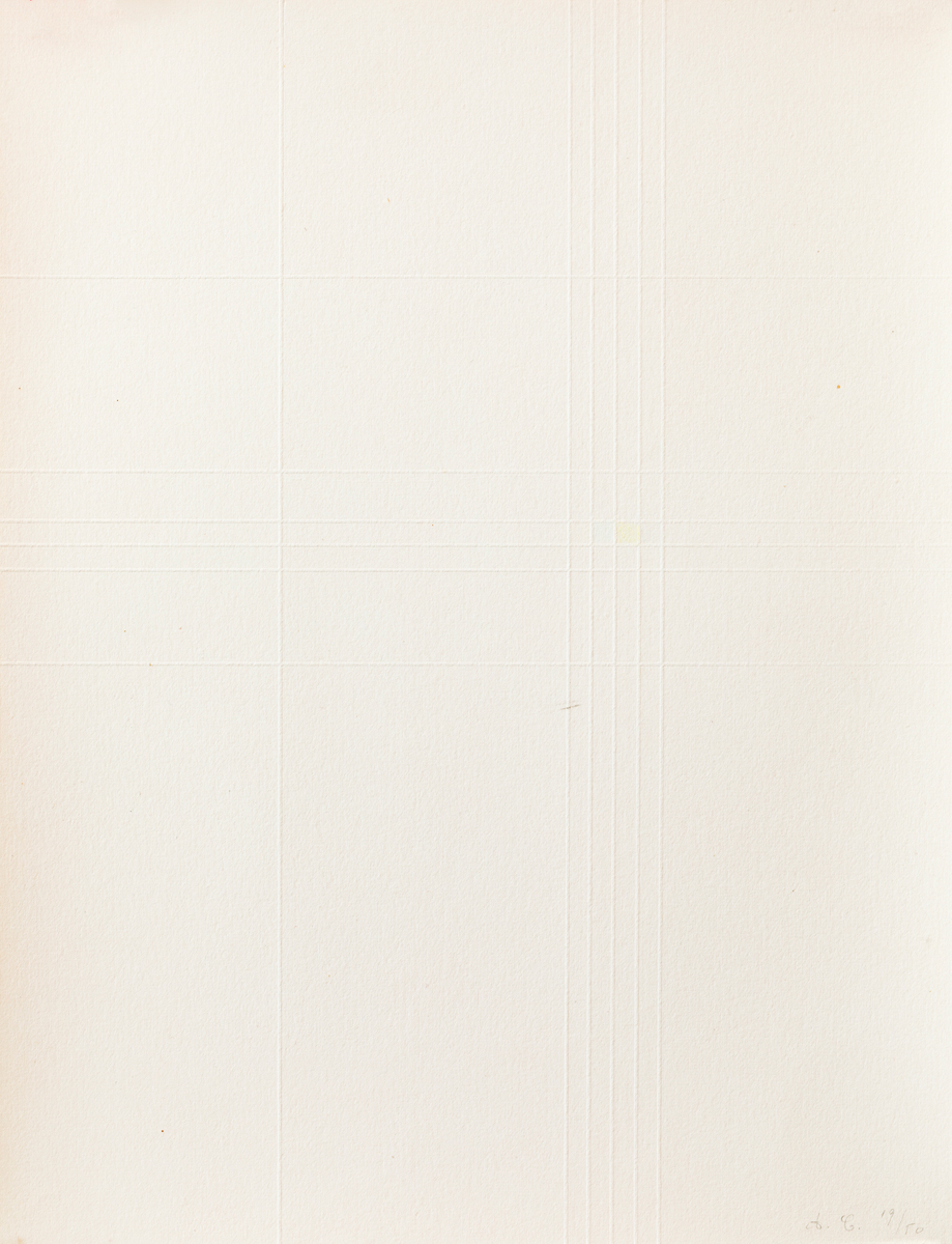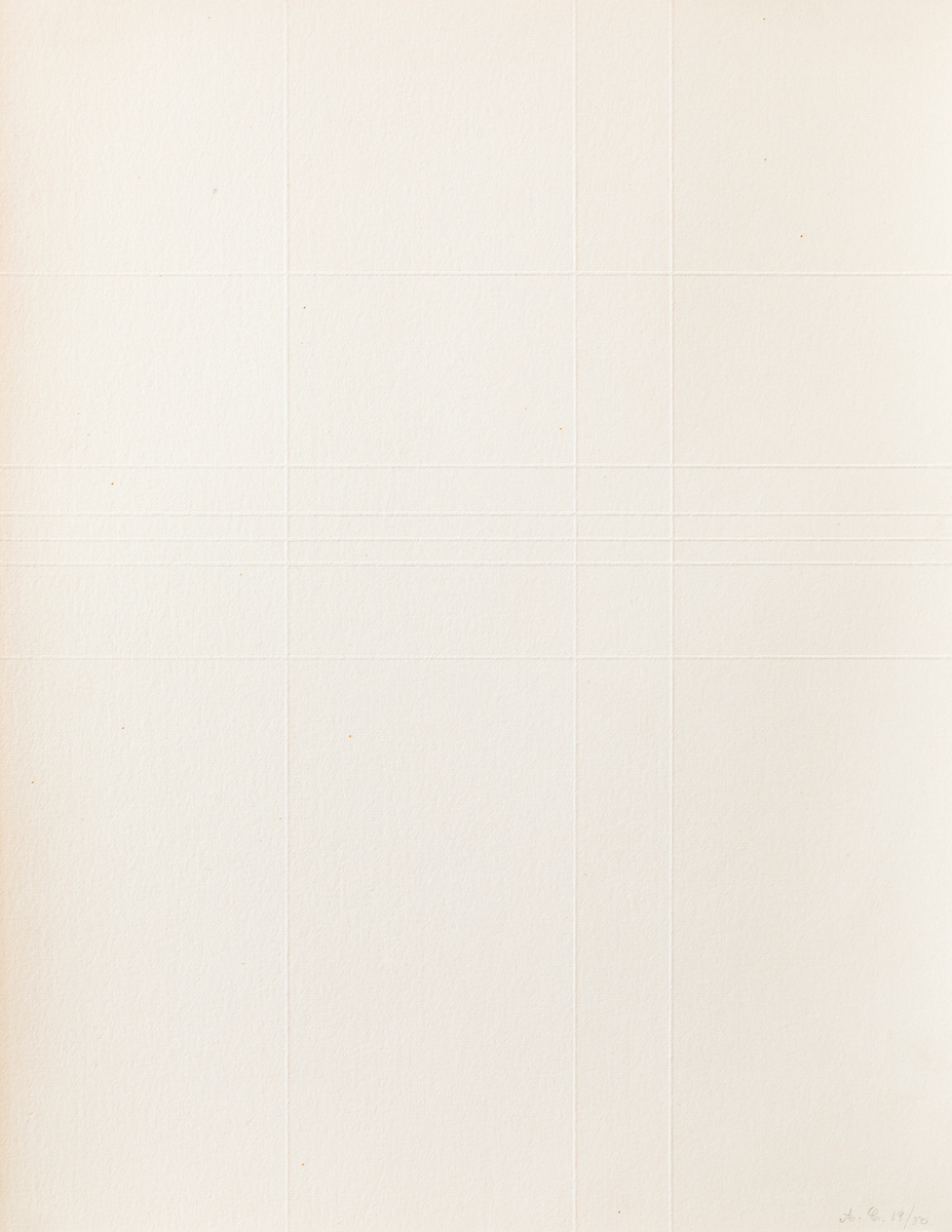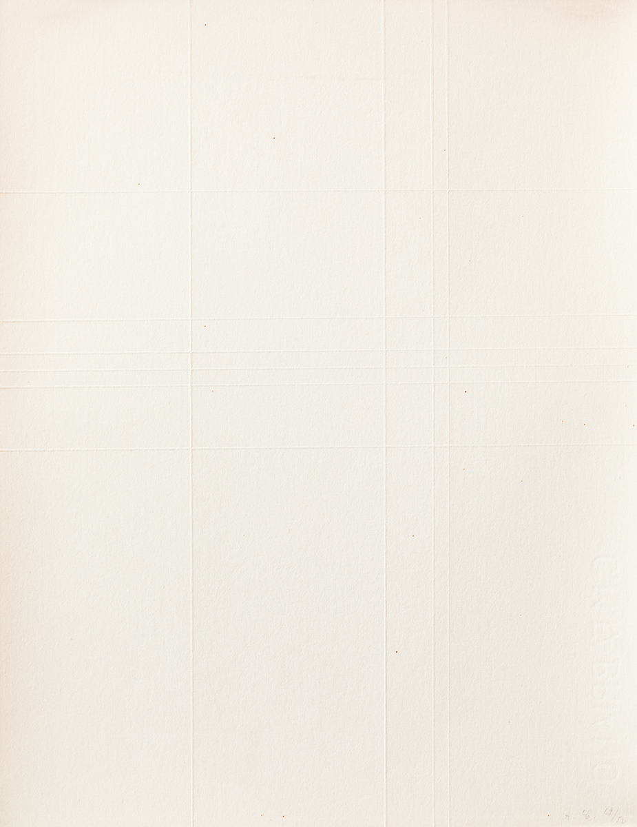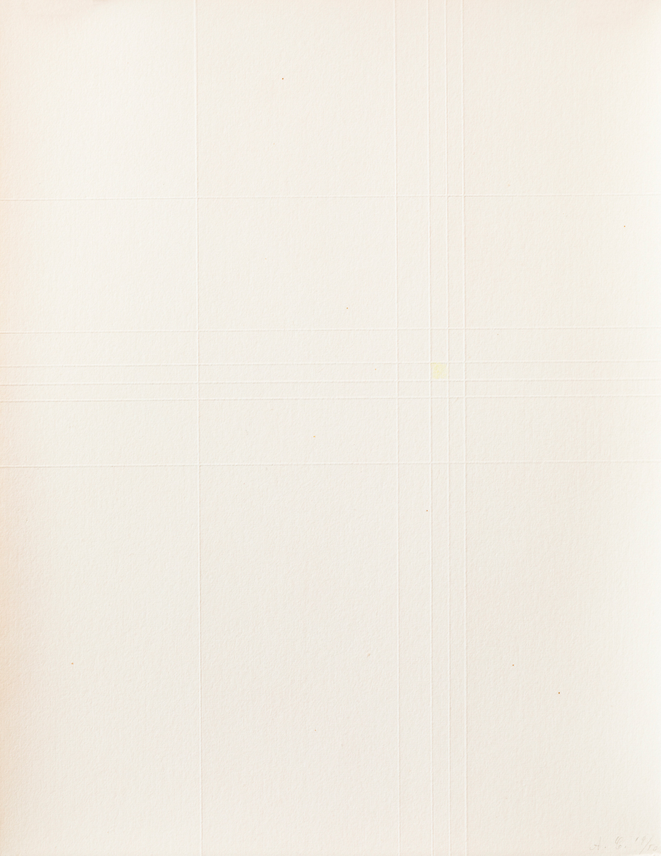 Cofanetto composto da testo di presentazione recante firma a matita di Giulio Carlo Argan, 6 puntesecche colorate a mano da Antonio Calderara, ciascuna delle quali recante firma e numerazione (Esemplari 19/50) a matita al fronte e colophon di presentazione recante firma a matita di Sergio Tosi e numerazione (Esemplare N.19)