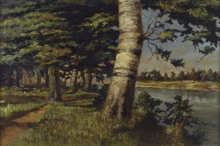 Mario Bordi (Firenze, 1896 - 1980) L'Arno alle Cascine Olio su compensato, cm. 50x75,5 Firma in basso a destra.