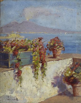 Lina Bill (Gruissan, 1855 - Avignone, 1936) Veduta del Vesuvio Olio su...