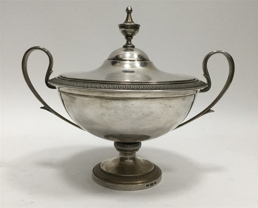 Zuccheriera biansata in argento con decoro a palmette (h. cm 18) (g 500 ca.)...