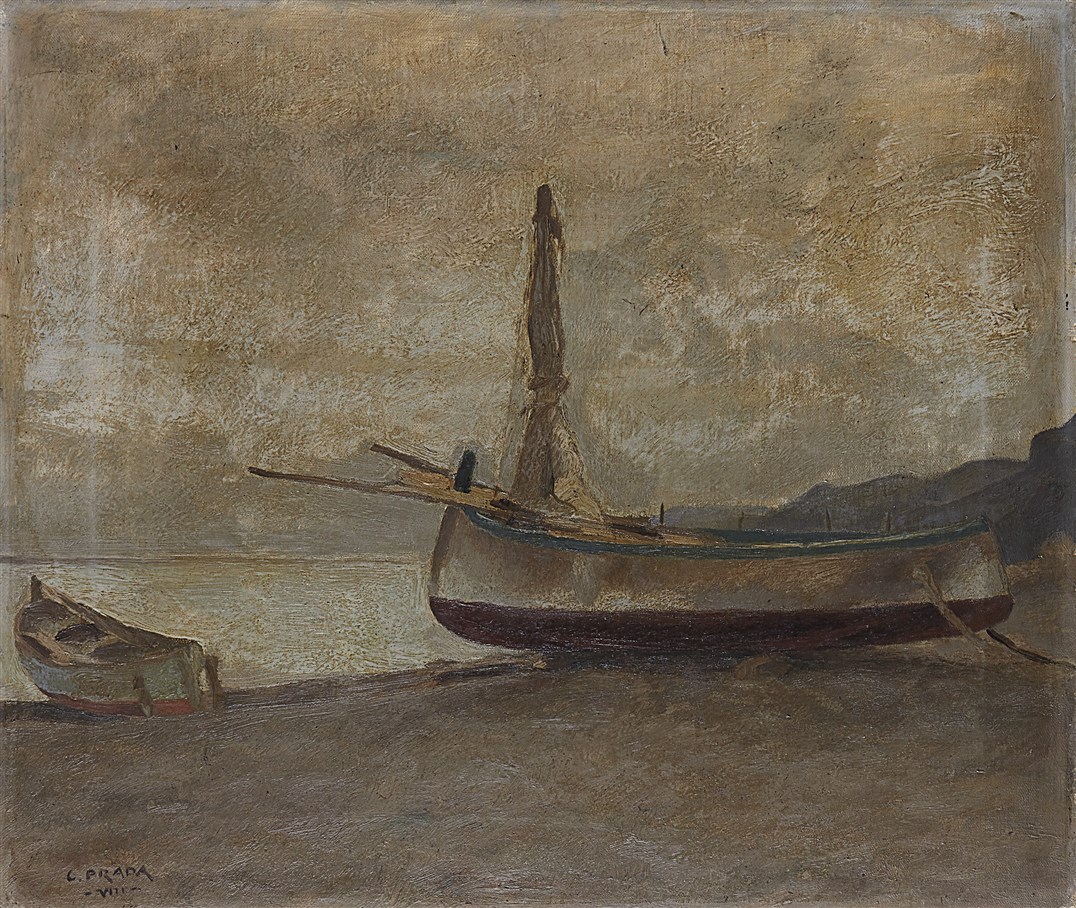 Carlo Prada (Milano 1884 - Santa Margherita Ligure 1960) "Barche" olio su...