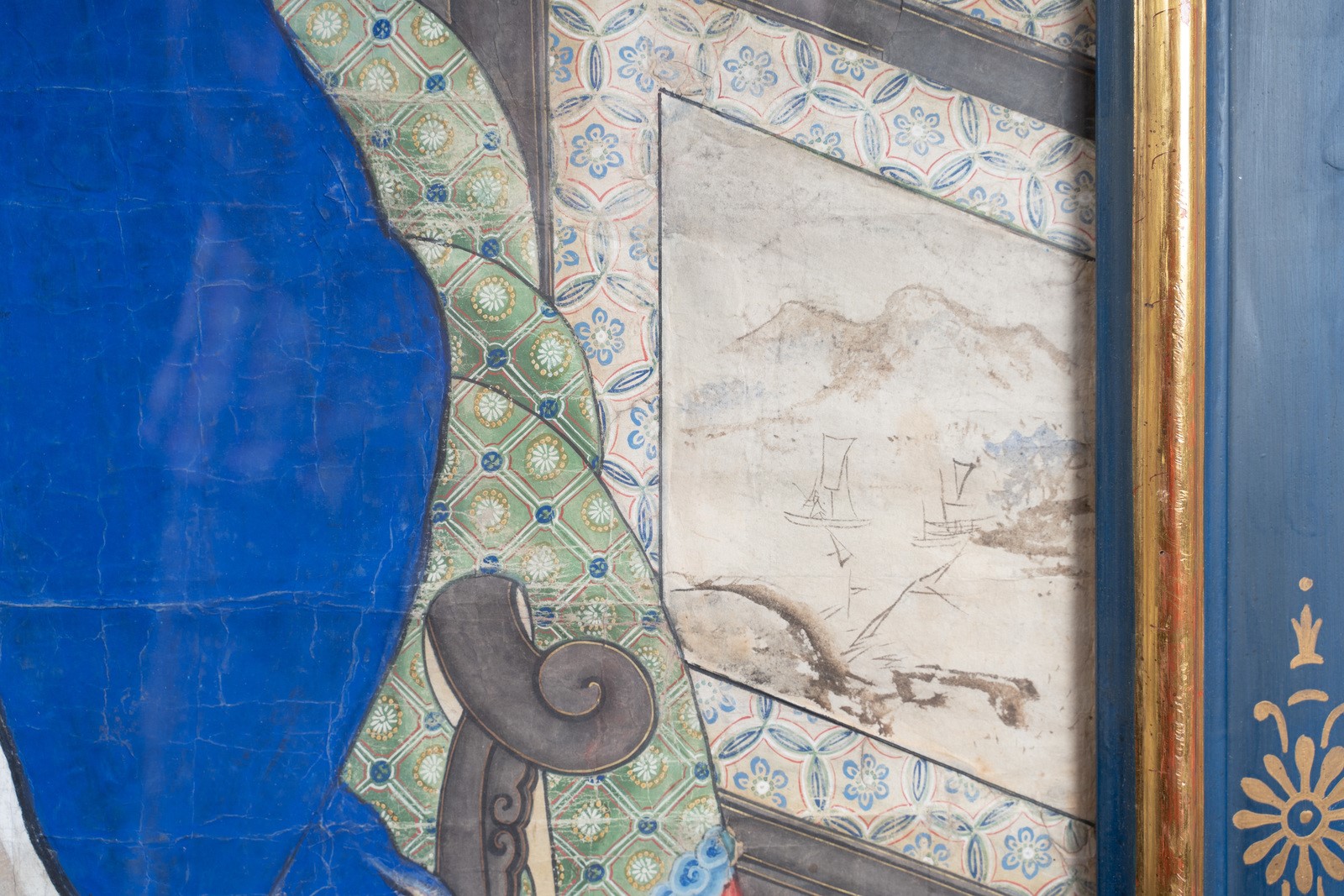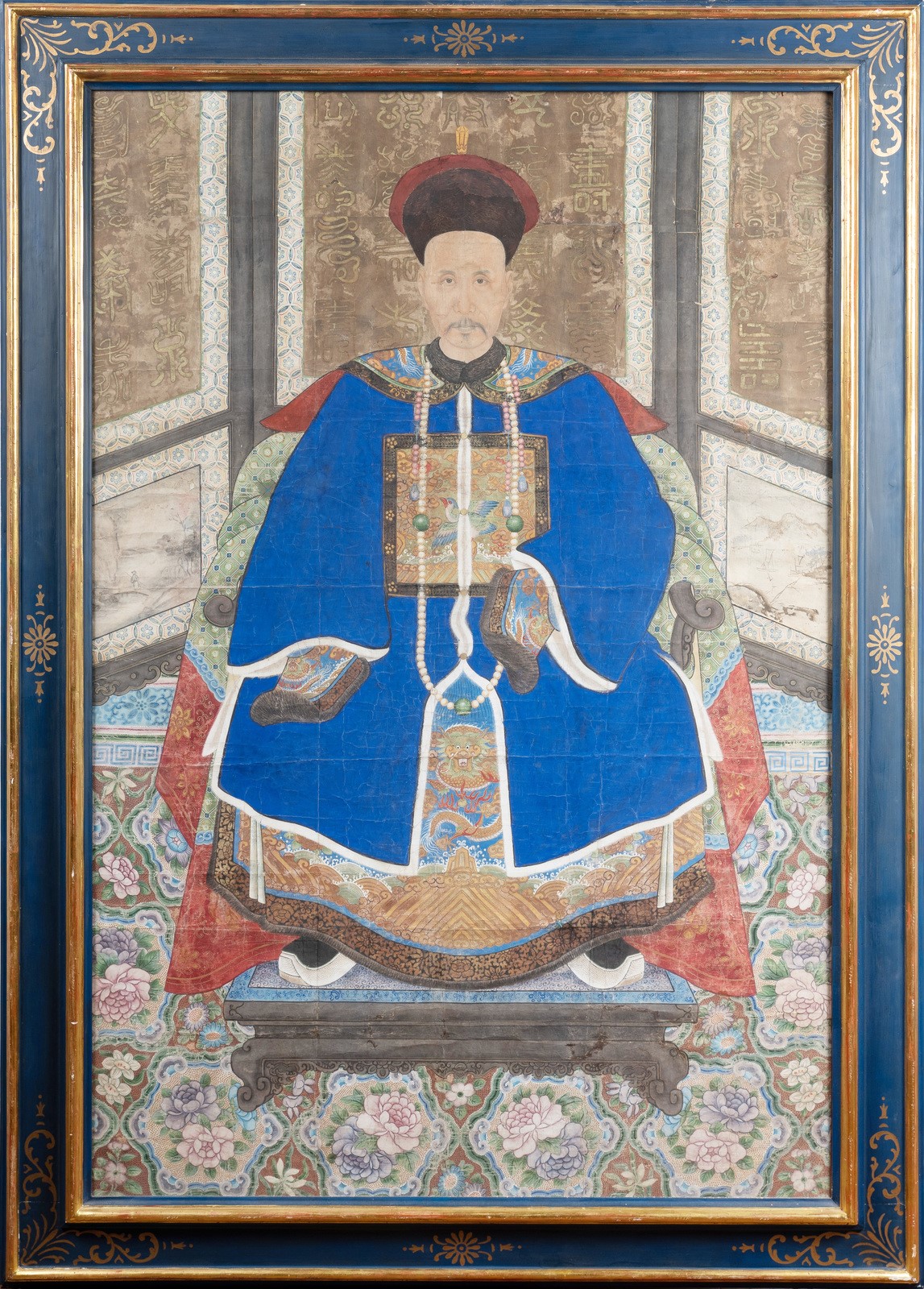 Chinese Art A large very fine painting portraying an officer China, Qing dynasty, 18th century . . Cm 85,00 x 130,00. Provenance: Noble family Rome. Italy. Frame present