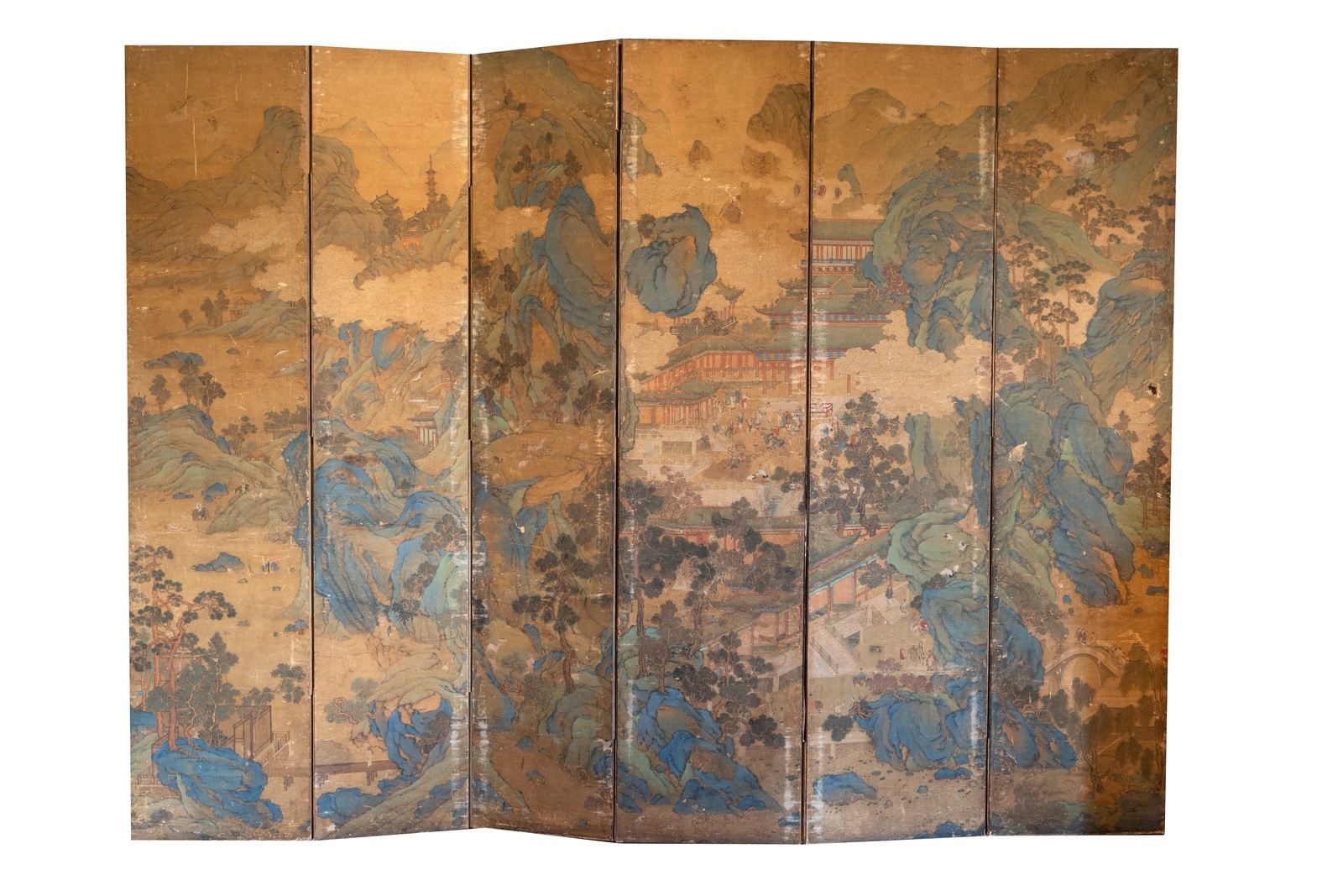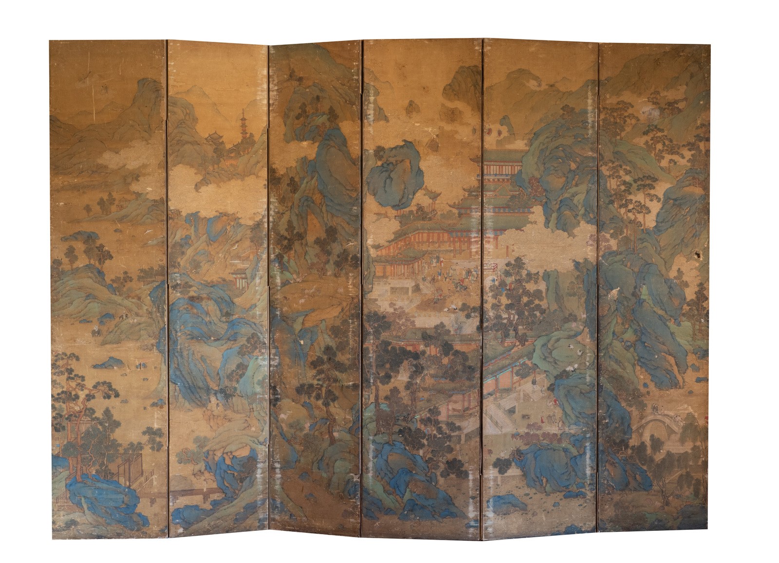 Arte Cinese A large six panel screenCina, Unknown artist, 17th century .