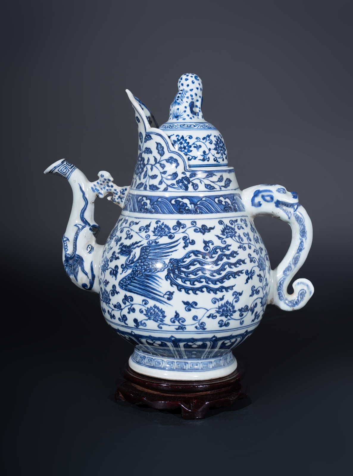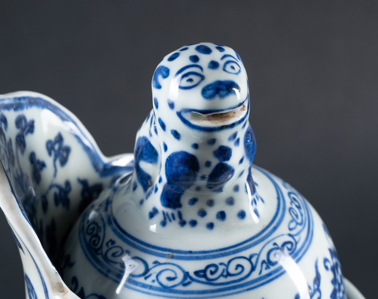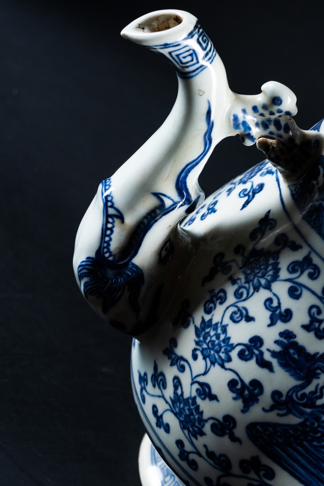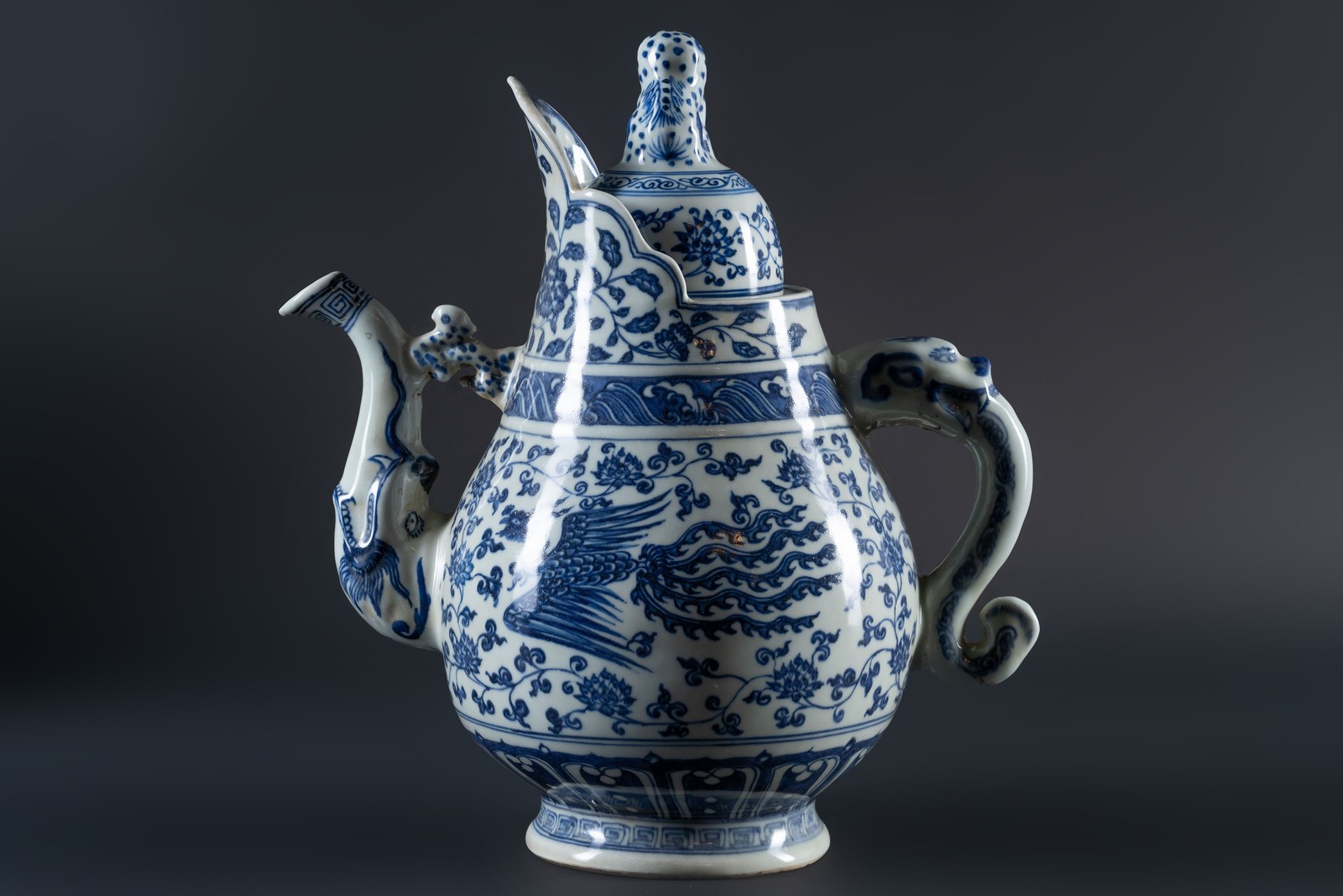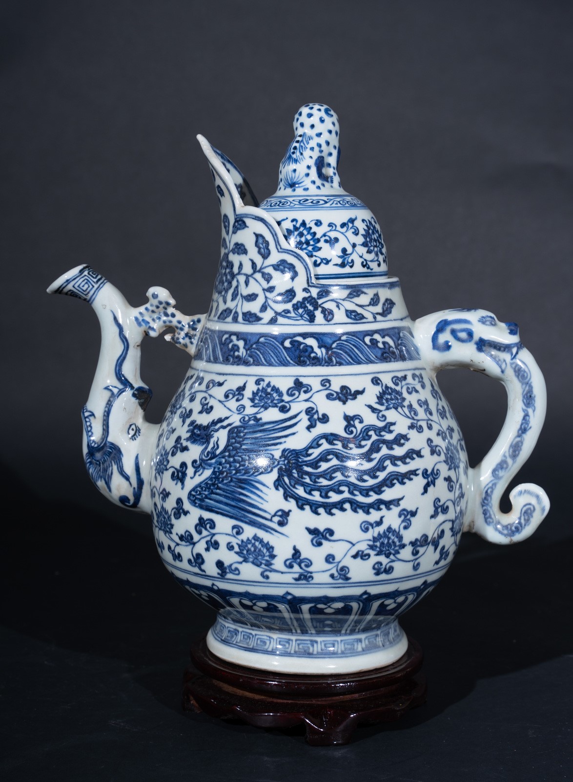 Arte Cinese A large blue and white porcelain teapot painted with lotus flowers and phoenixes China, 20th century .