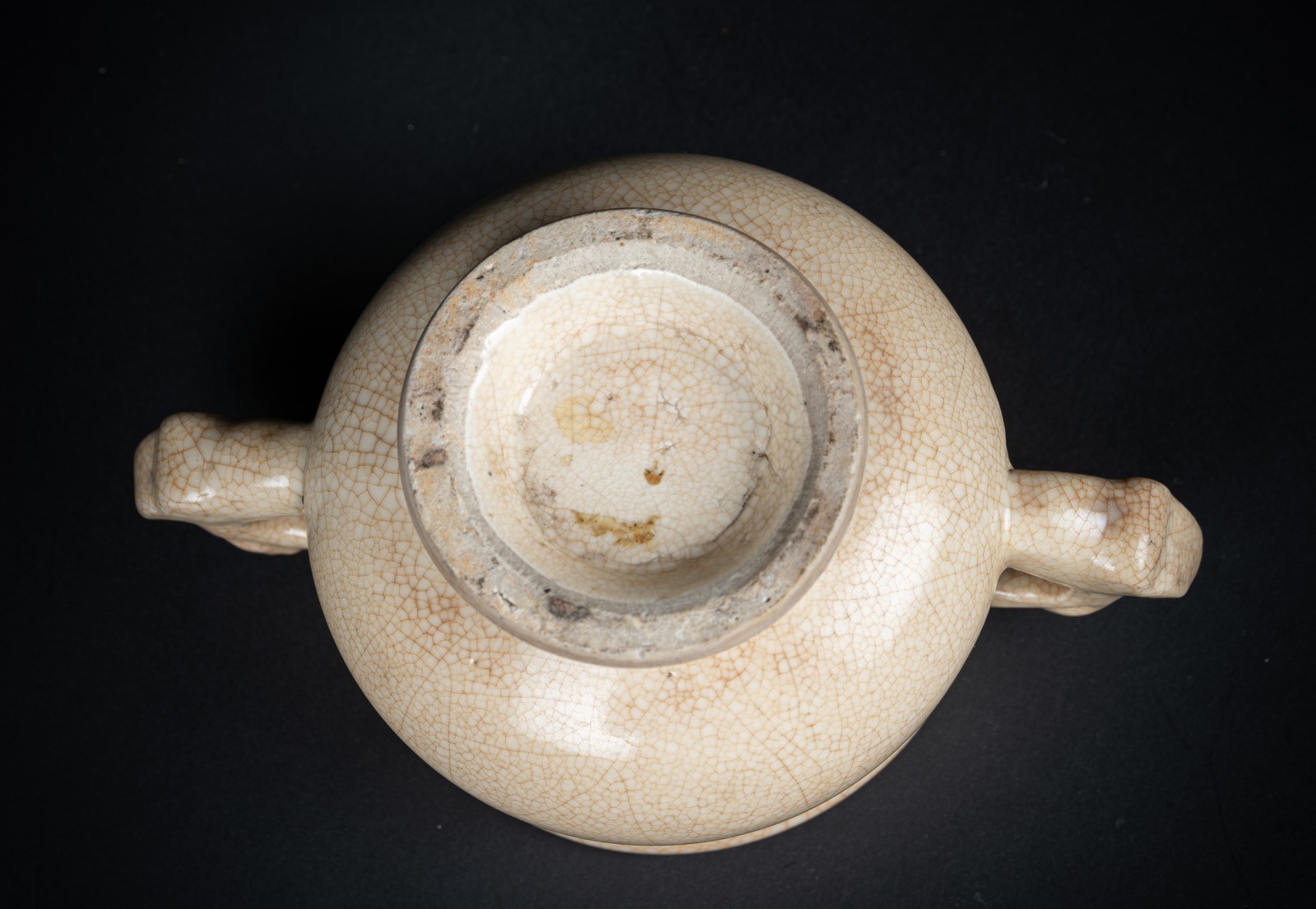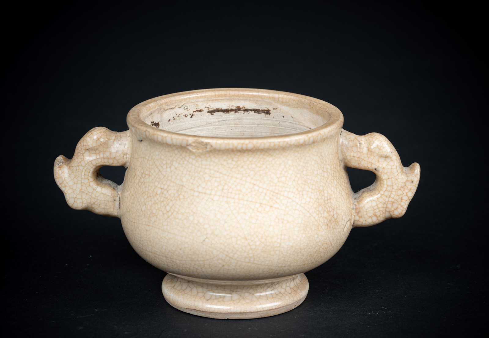 Arte Cinese A craquelé porcelain footed cup with pig dragon handlesChina, Qing dynasty, 18th century .