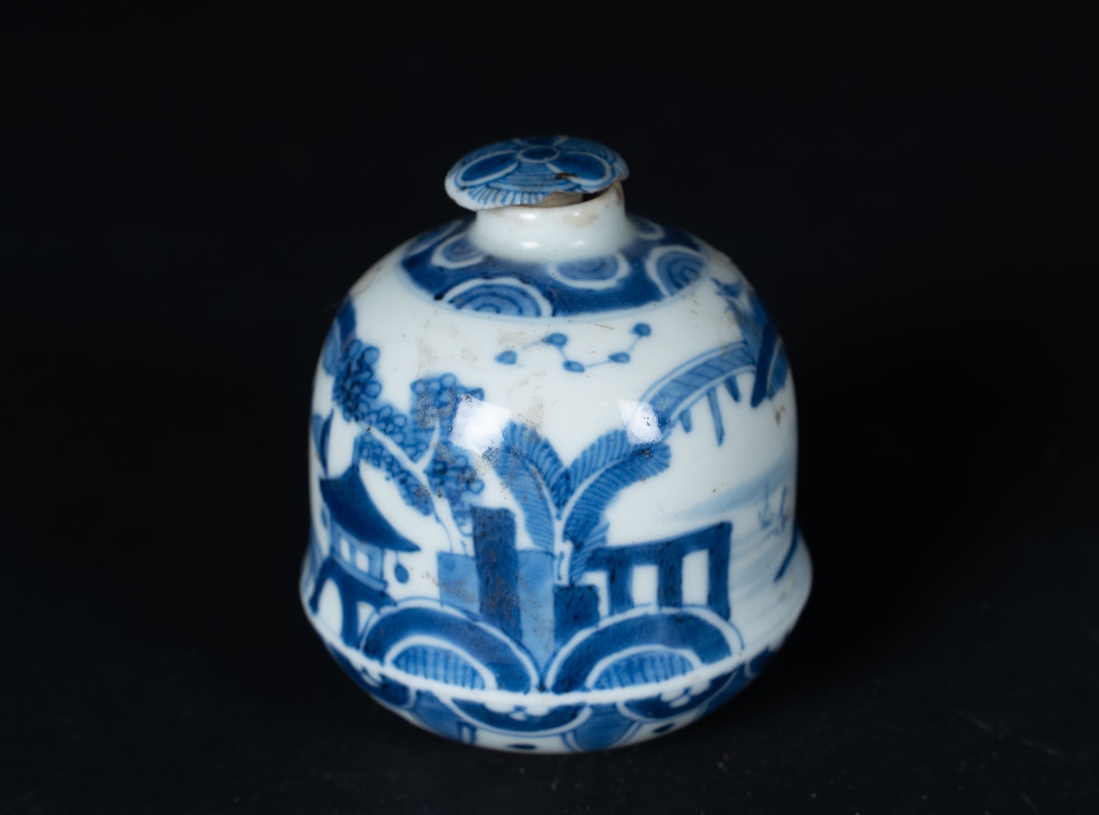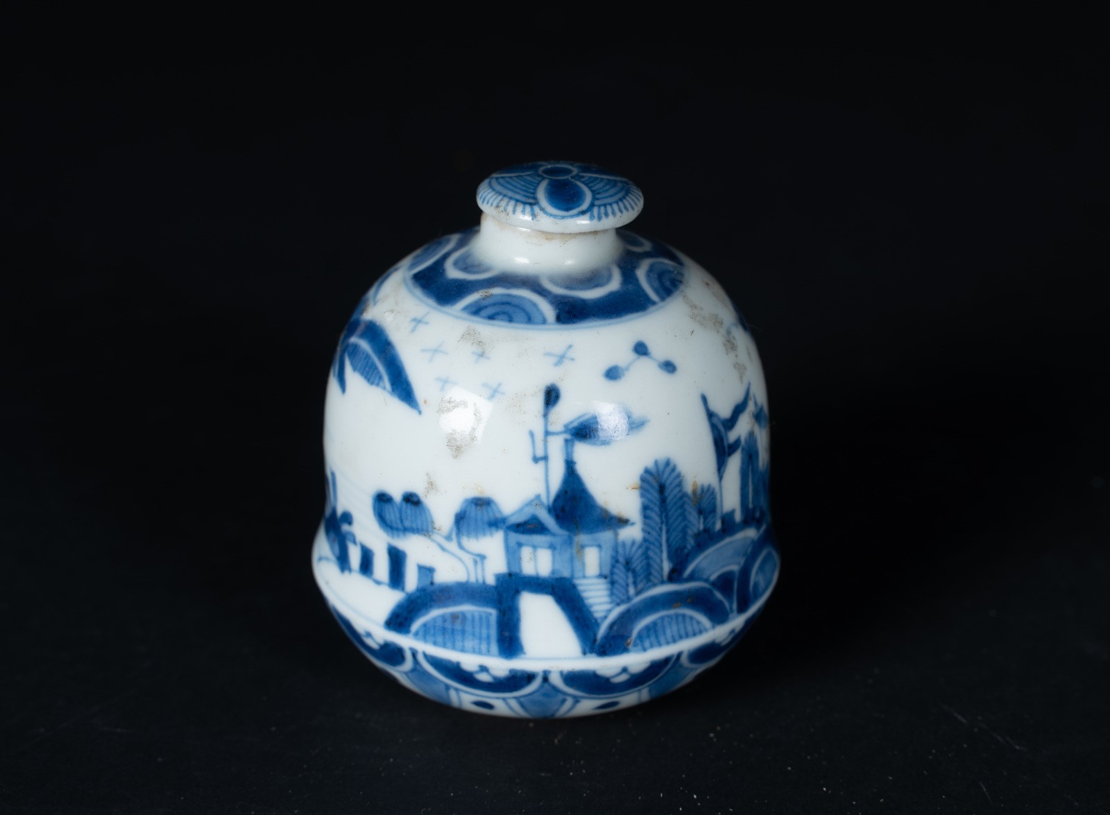 Chinese Art A blue and white porcelain vase painted with landscapeChina, Qing dynasty, Kangxi period. . Cm 9,00.