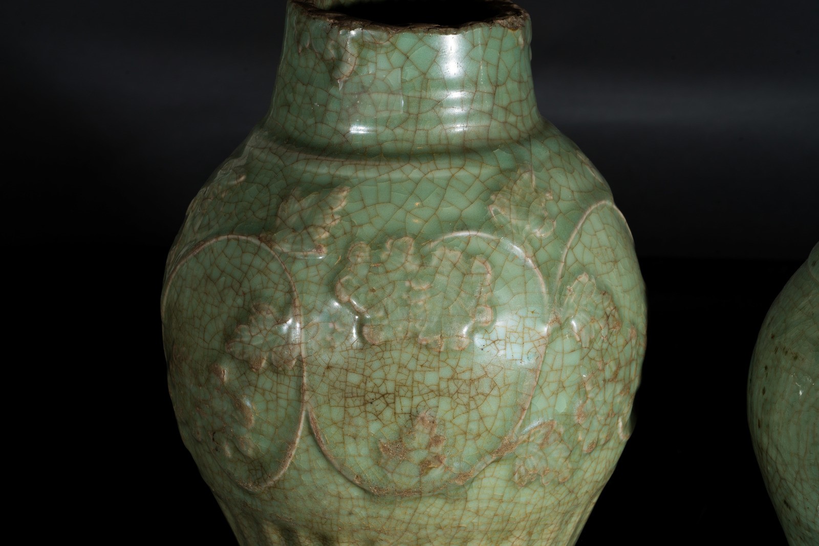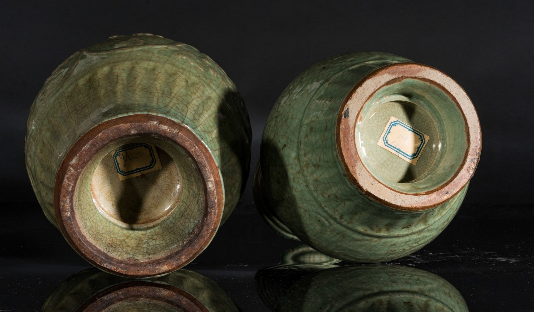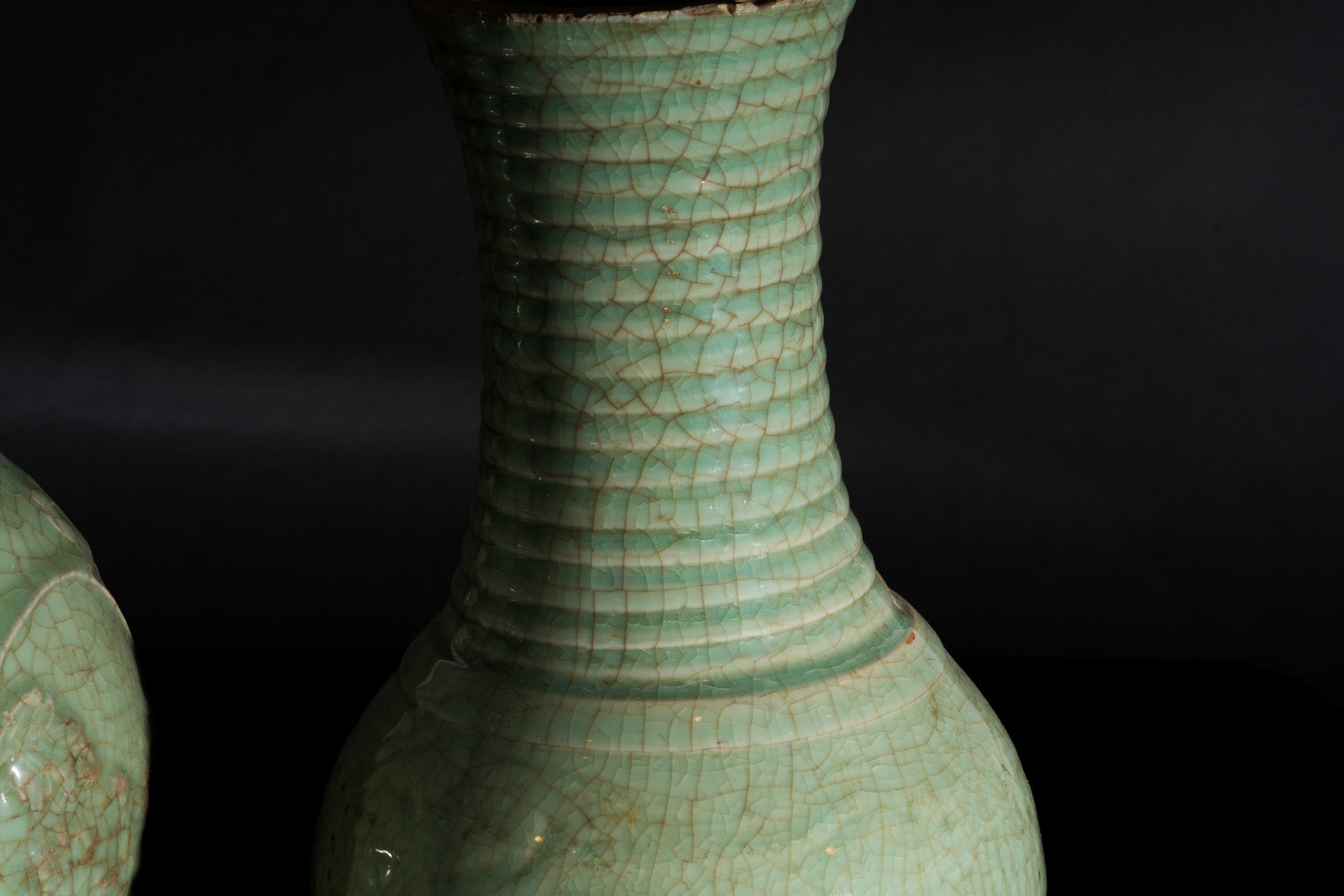 Chinese Art Two celadon glazed baluster vases China, Yuan dynasty . . Cm 34,00 x 43,00.