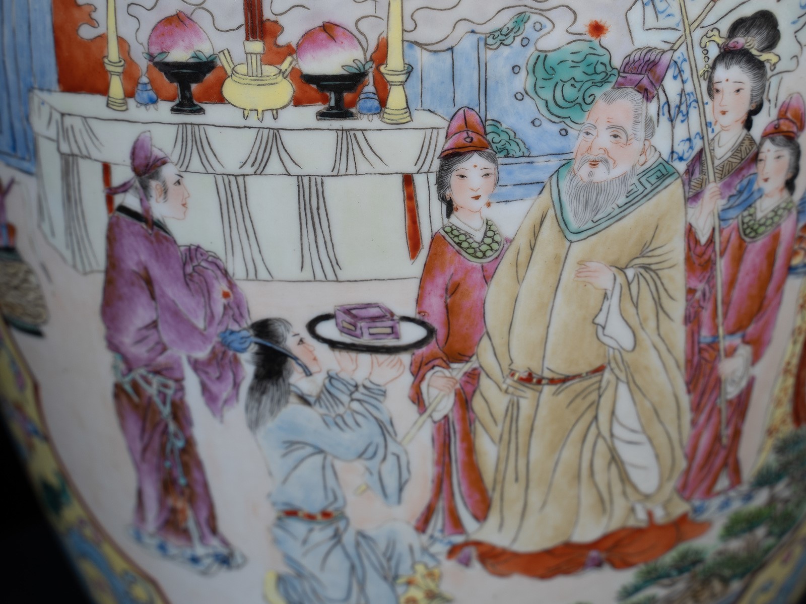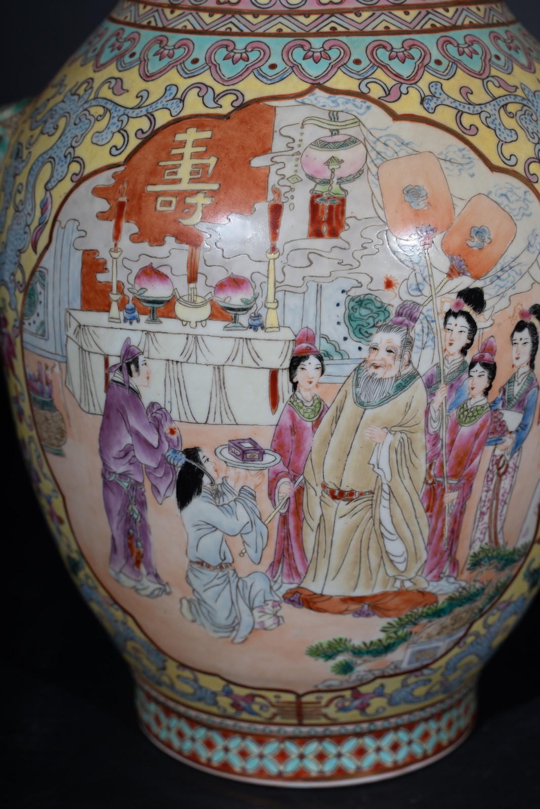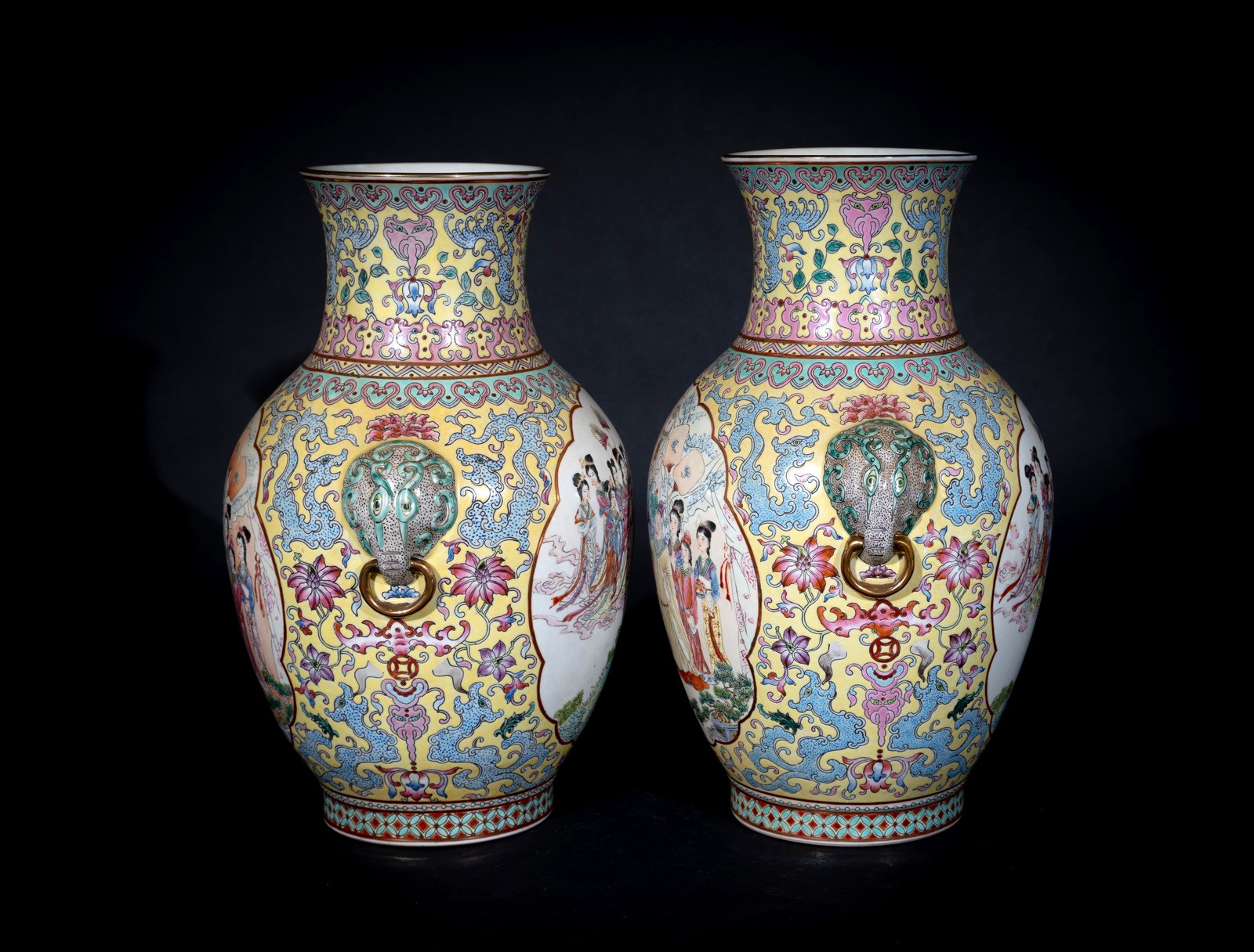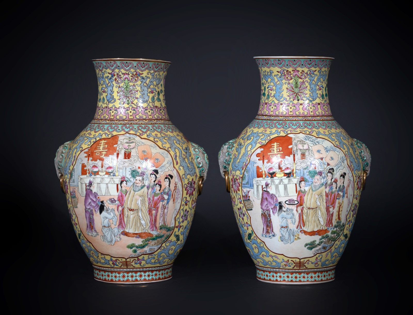 Chinese Art A pair of porcelain vases over yellow ground China, 19th-20th century . . Cm 15,00 x 42,00.