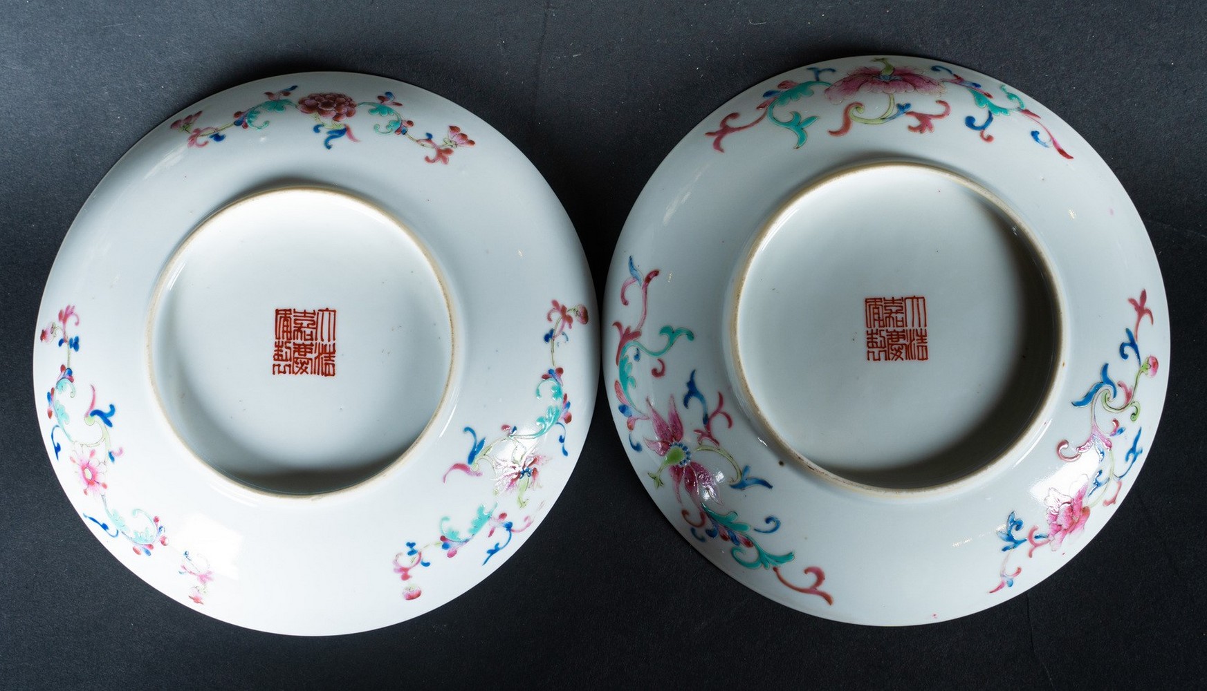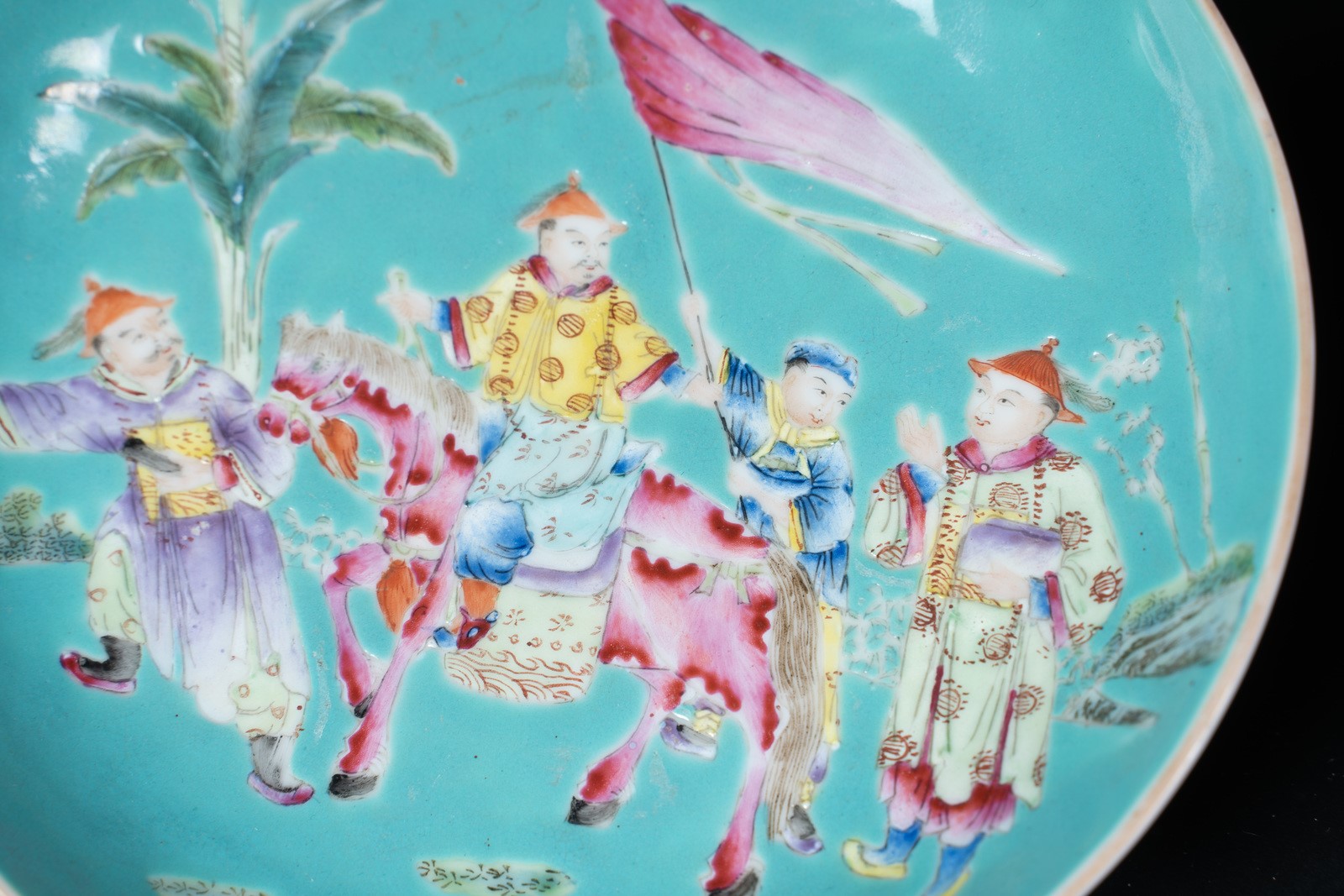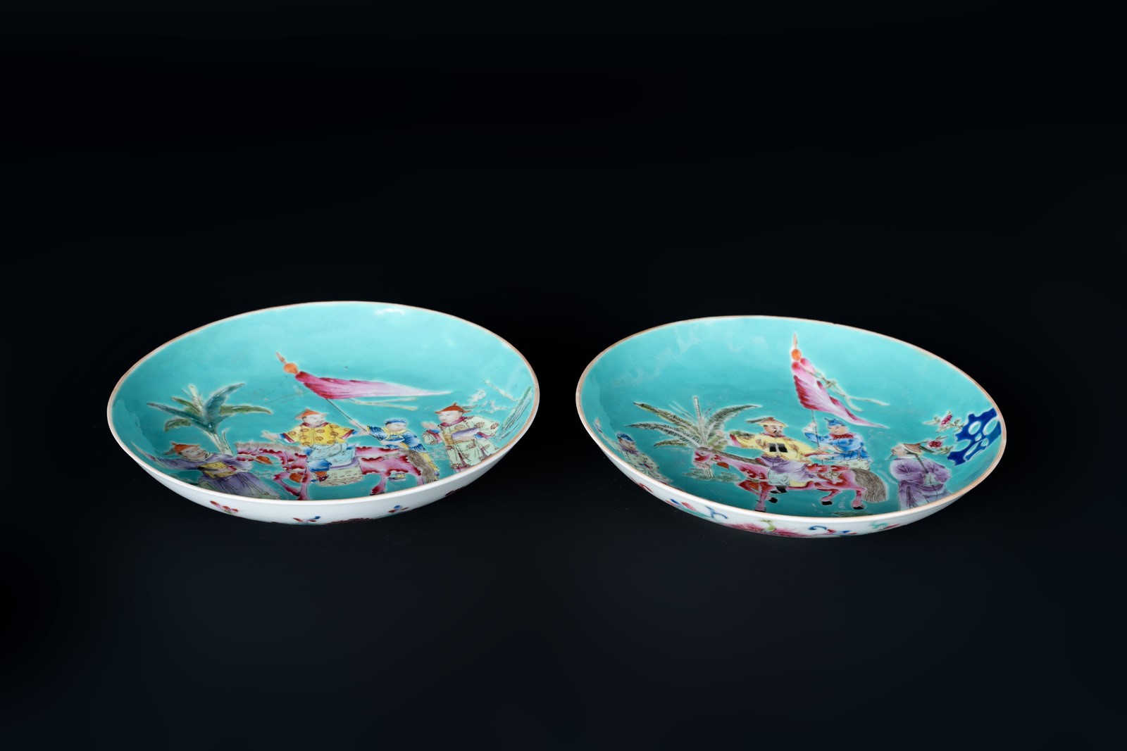 Chinese Art A pair of Chinese turquoise ground pottery dishes bearing Jiaqing six character seal mark at the base . . Cm 16,00.