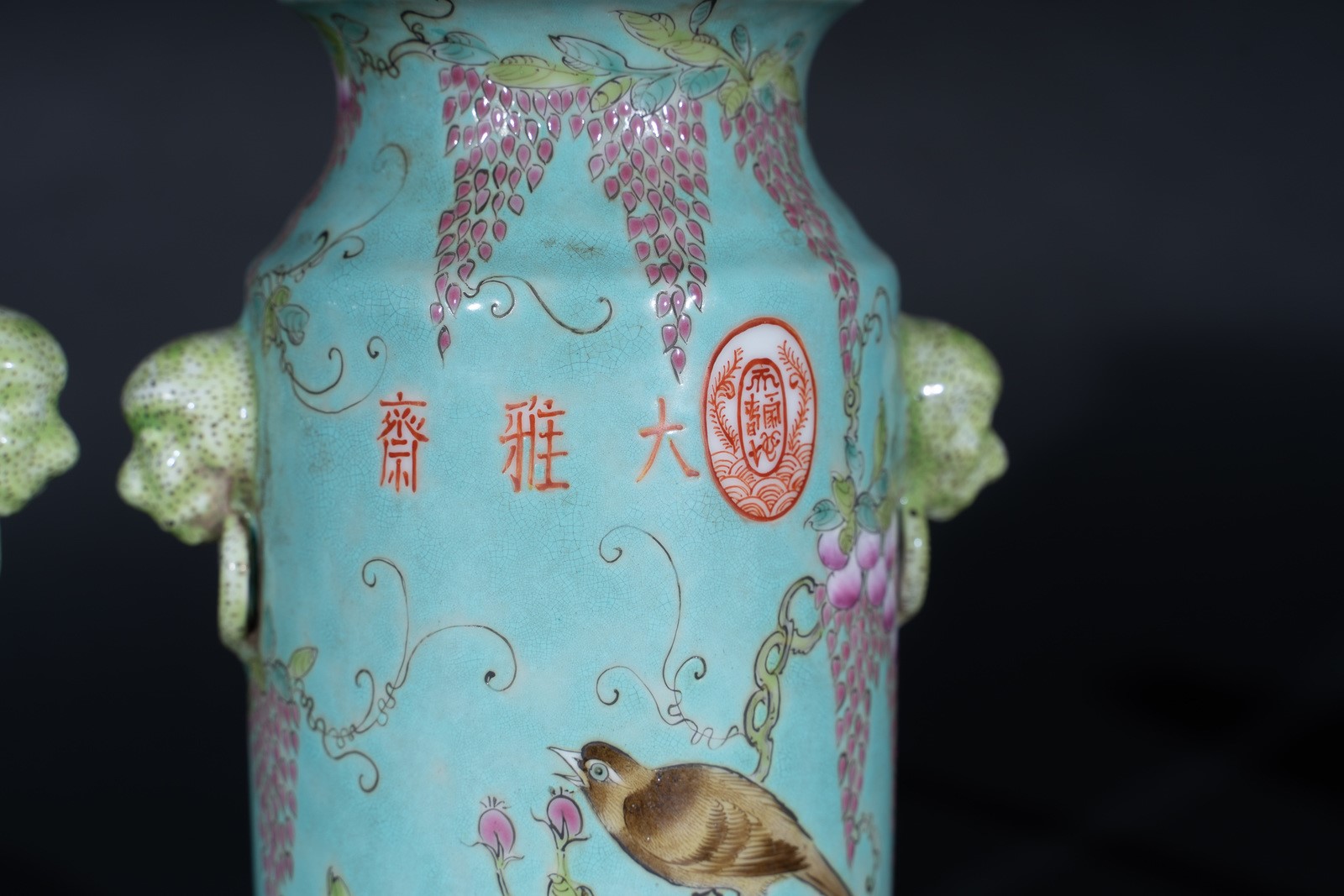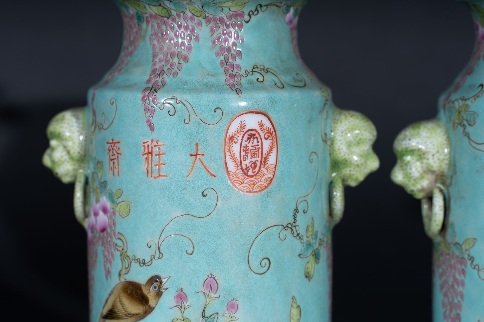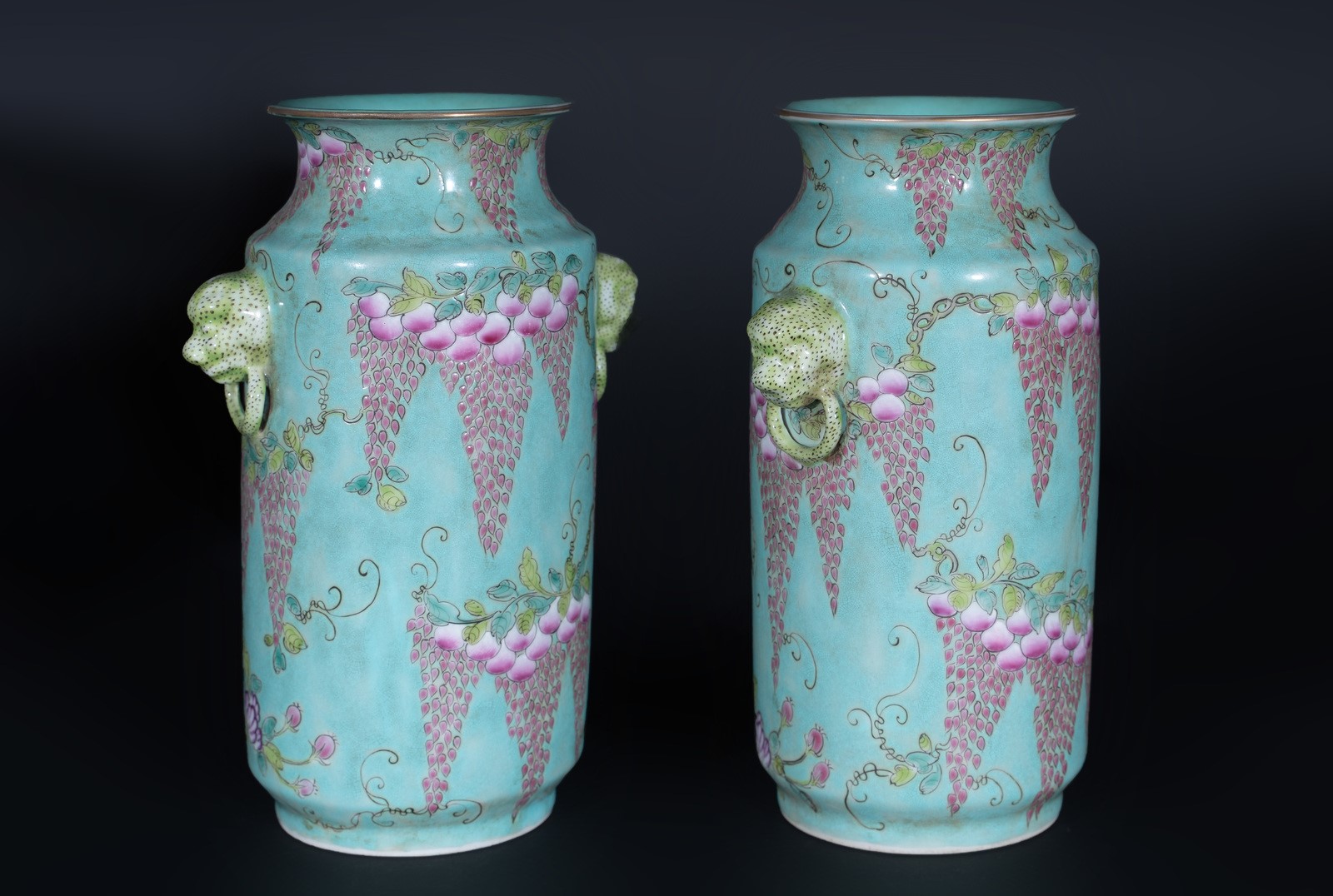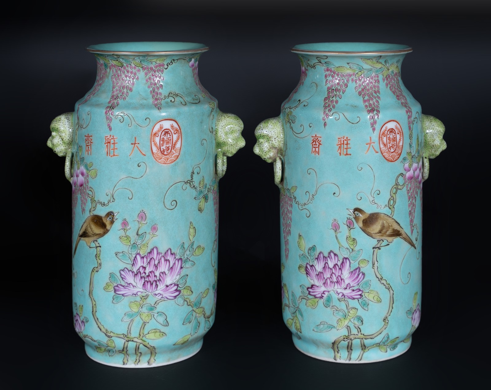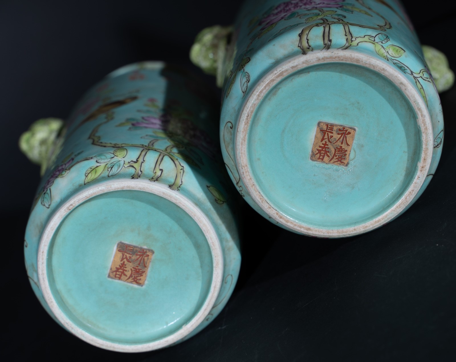 Arte Cinese A pair of porcelain turquoise vases bearing auspicious marks China, early 20th century .