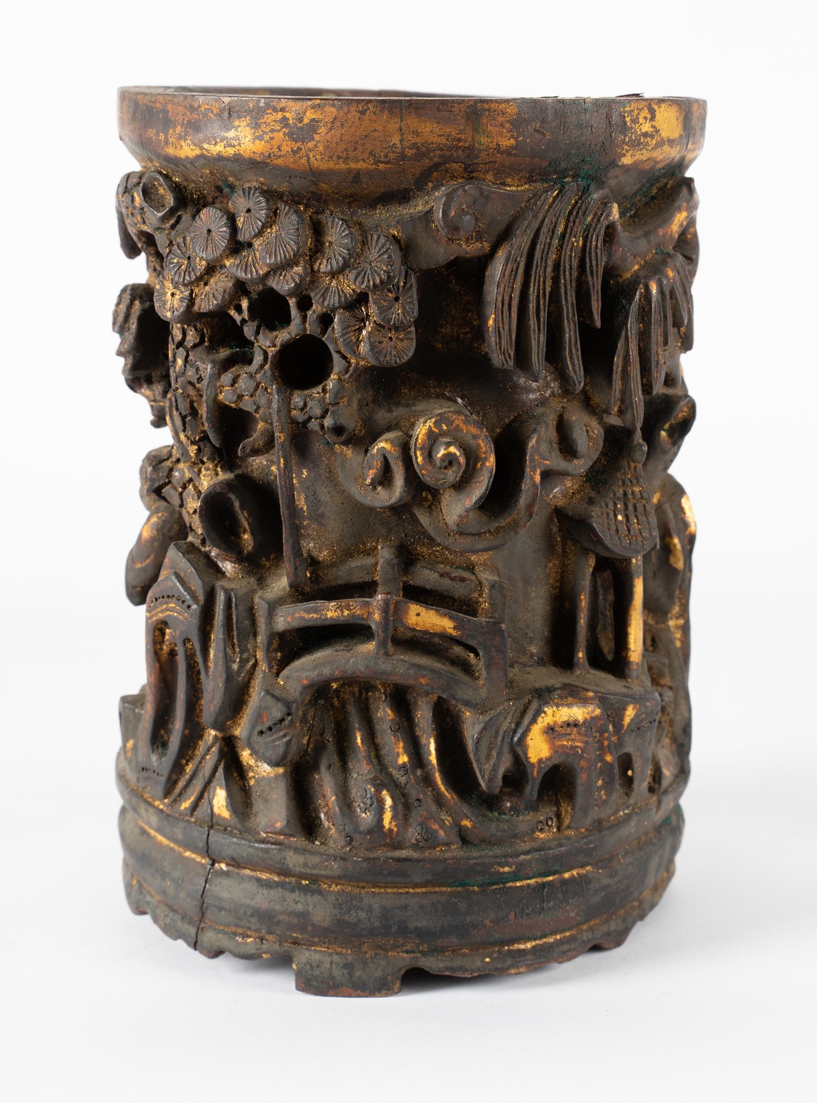 Arte Cinese A large wooden lacquered bitong brush pot carved with characters China, Qing dynasty, 19th century .