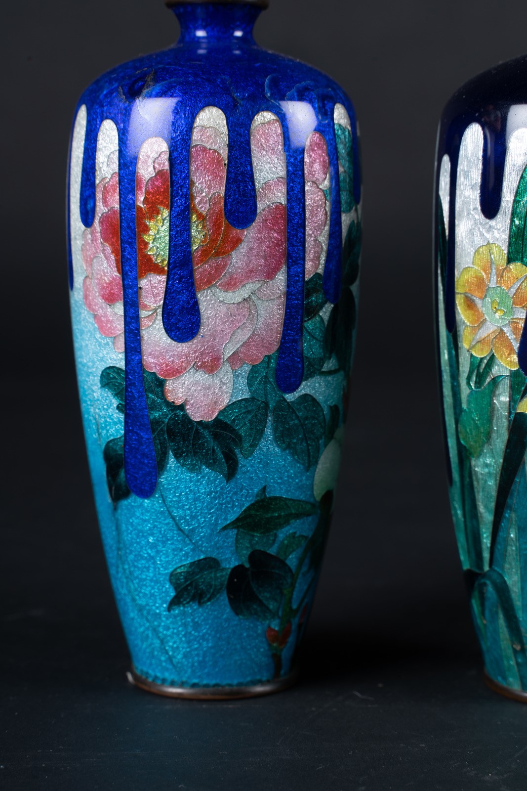 Chinese Art A pair of guilloche vases with floral and dripping decoration Japan, early 20th century . . Cm 15,00.