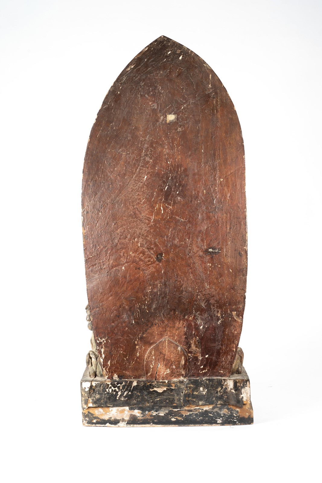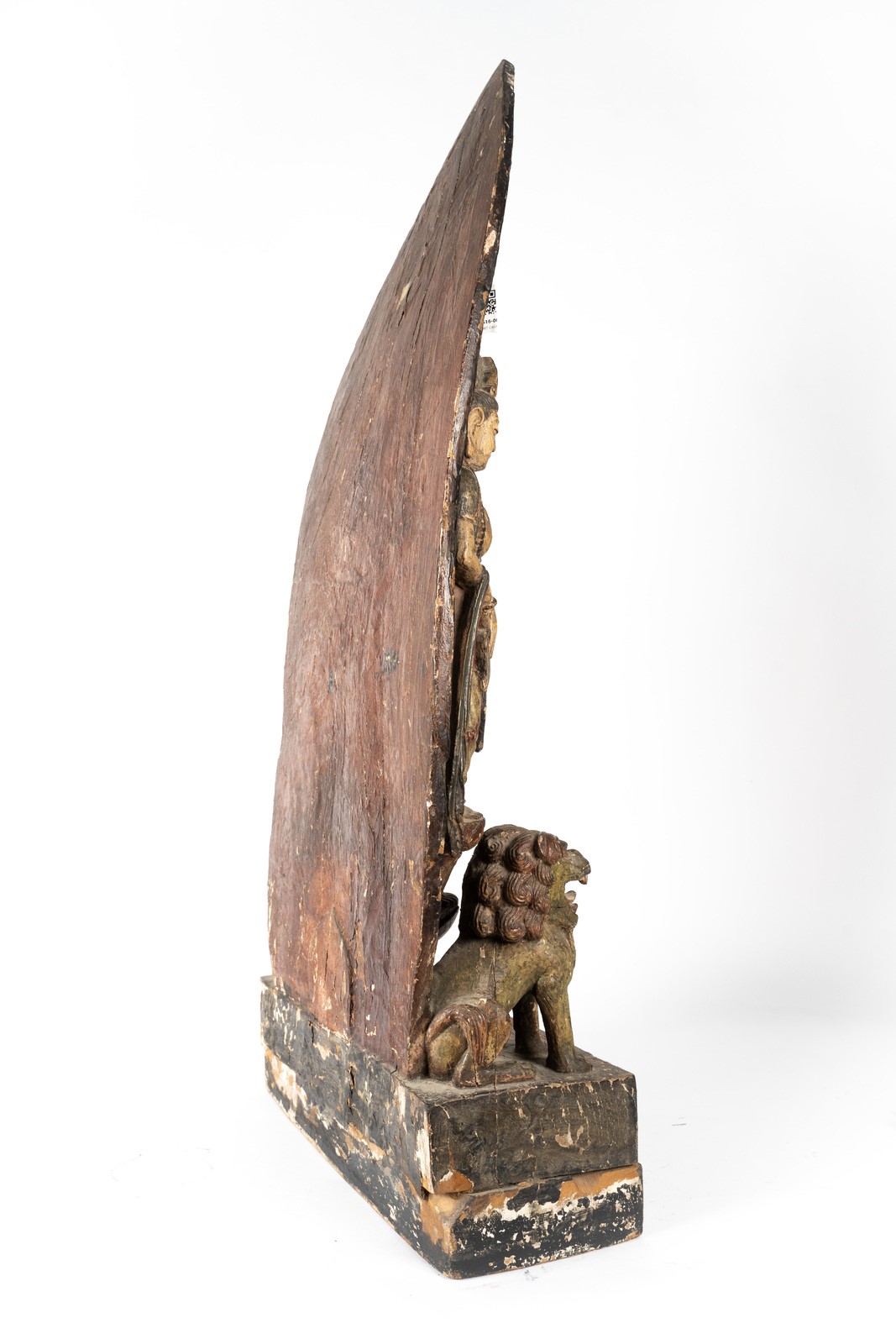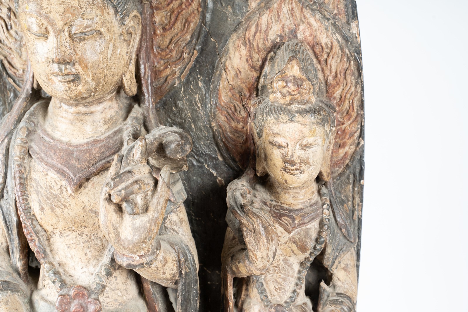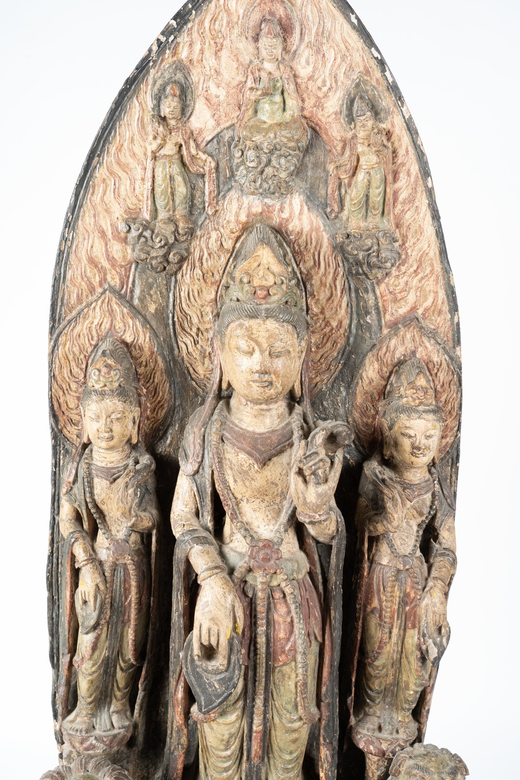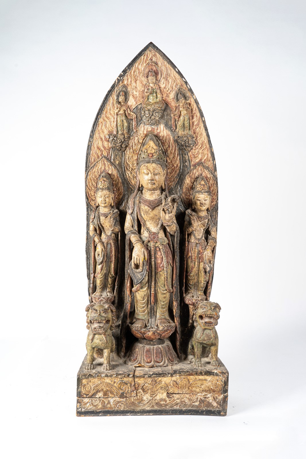 Arte Cinese A wooden lacquered stele depicting Guanyin flanked by attendants China, late Ming dynasty or later .