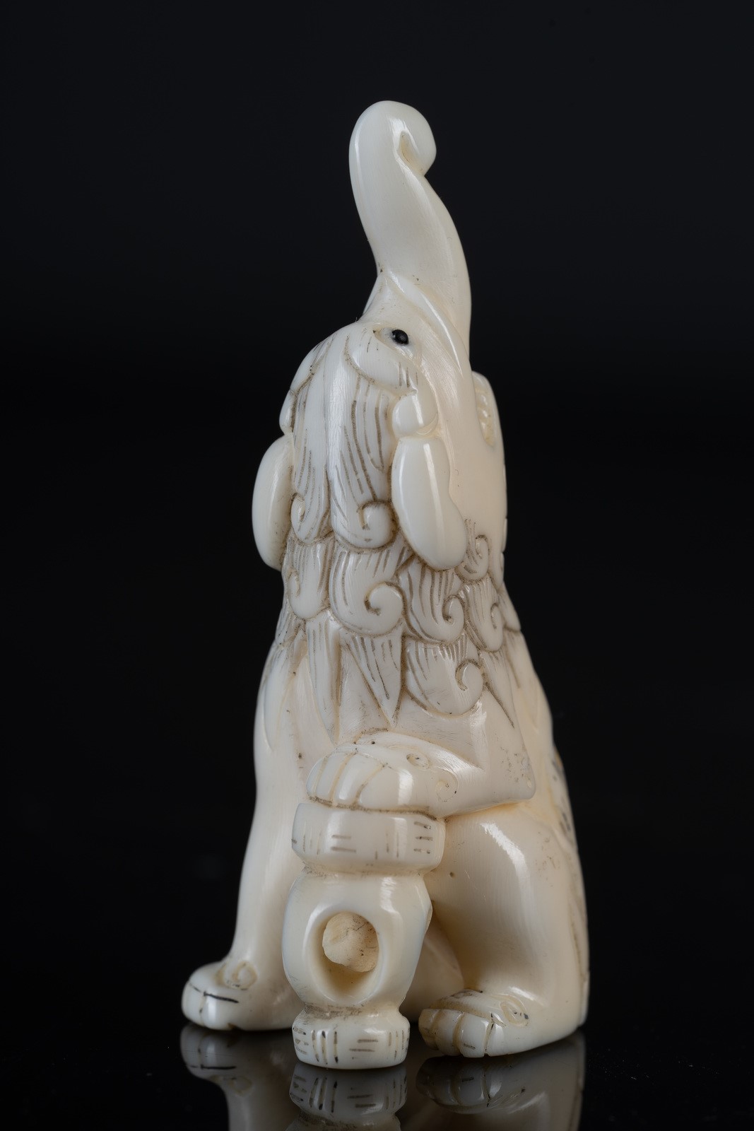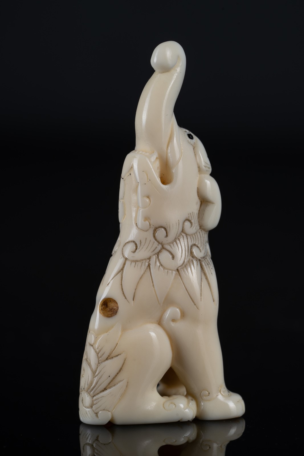 Japanese Art An ivory netsuke depicting an elephant with upward truck Japan, 19th century . . Cm 3,00 x 7,00 x 2,00.