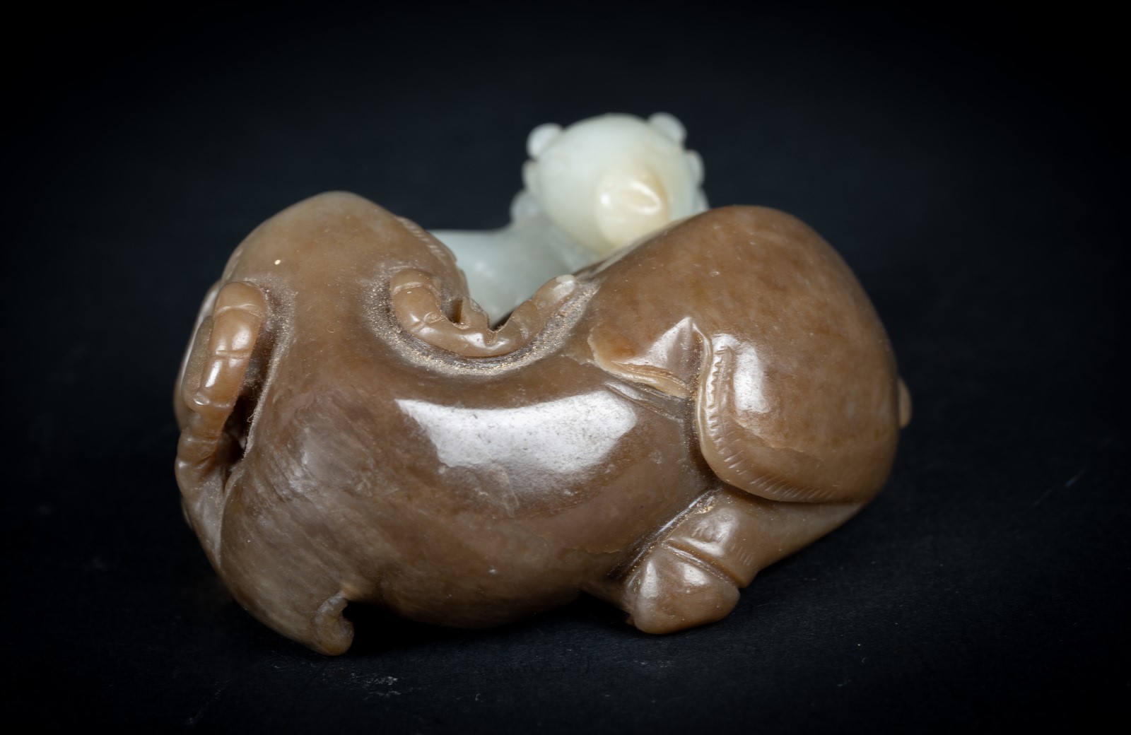 Chinese Art A jade carving depicting two rams China, 19th century . . Cm 6,50 x 5,50.