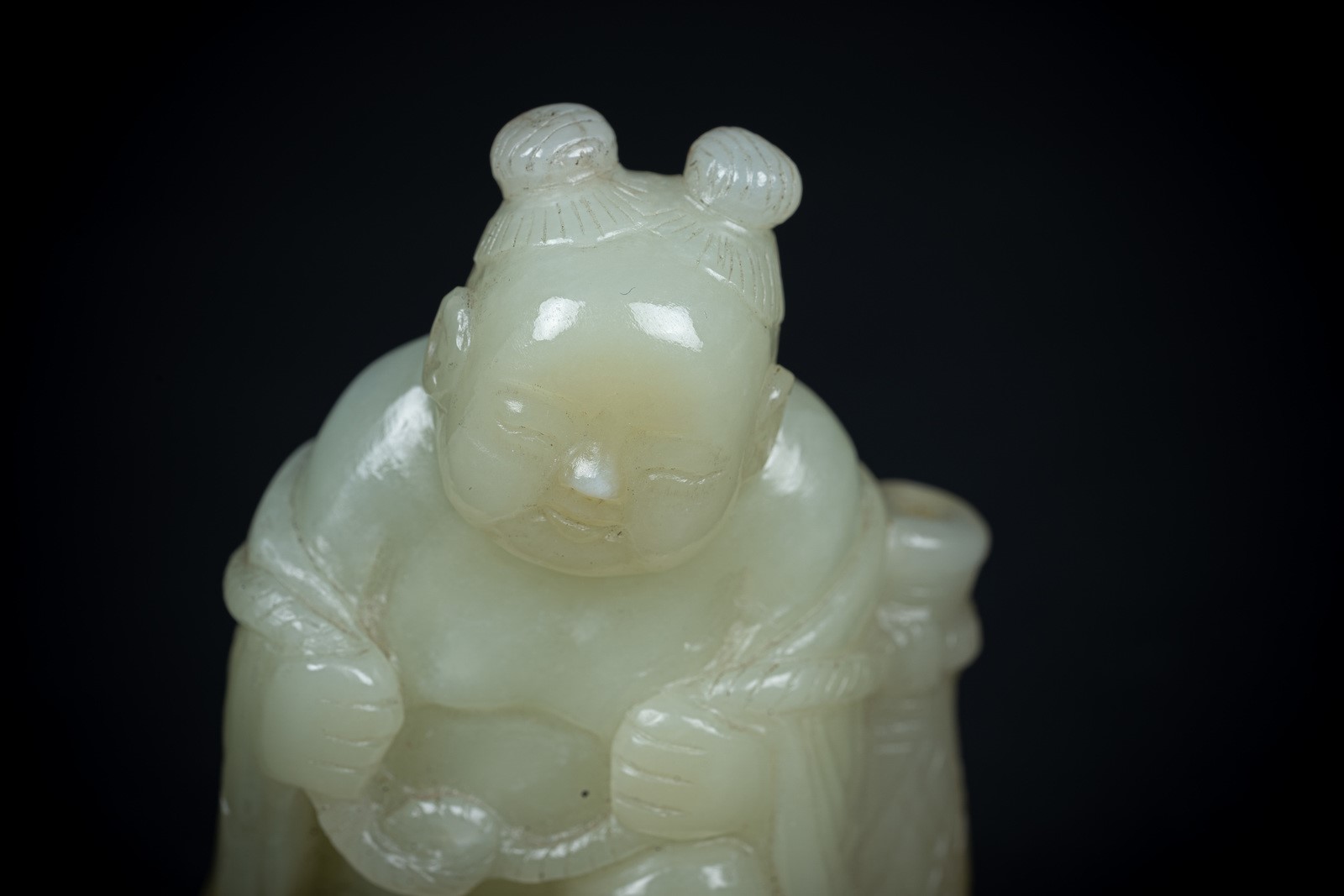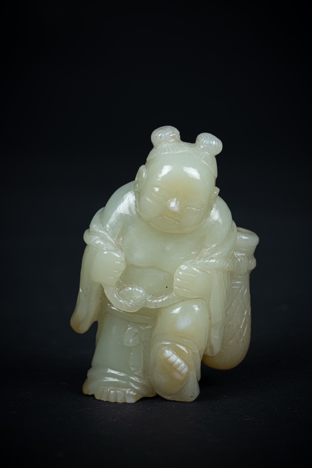 Chinese Art A kid shaped apple green carving China, Qing dynasty, 19th century . . Cm 7,00.