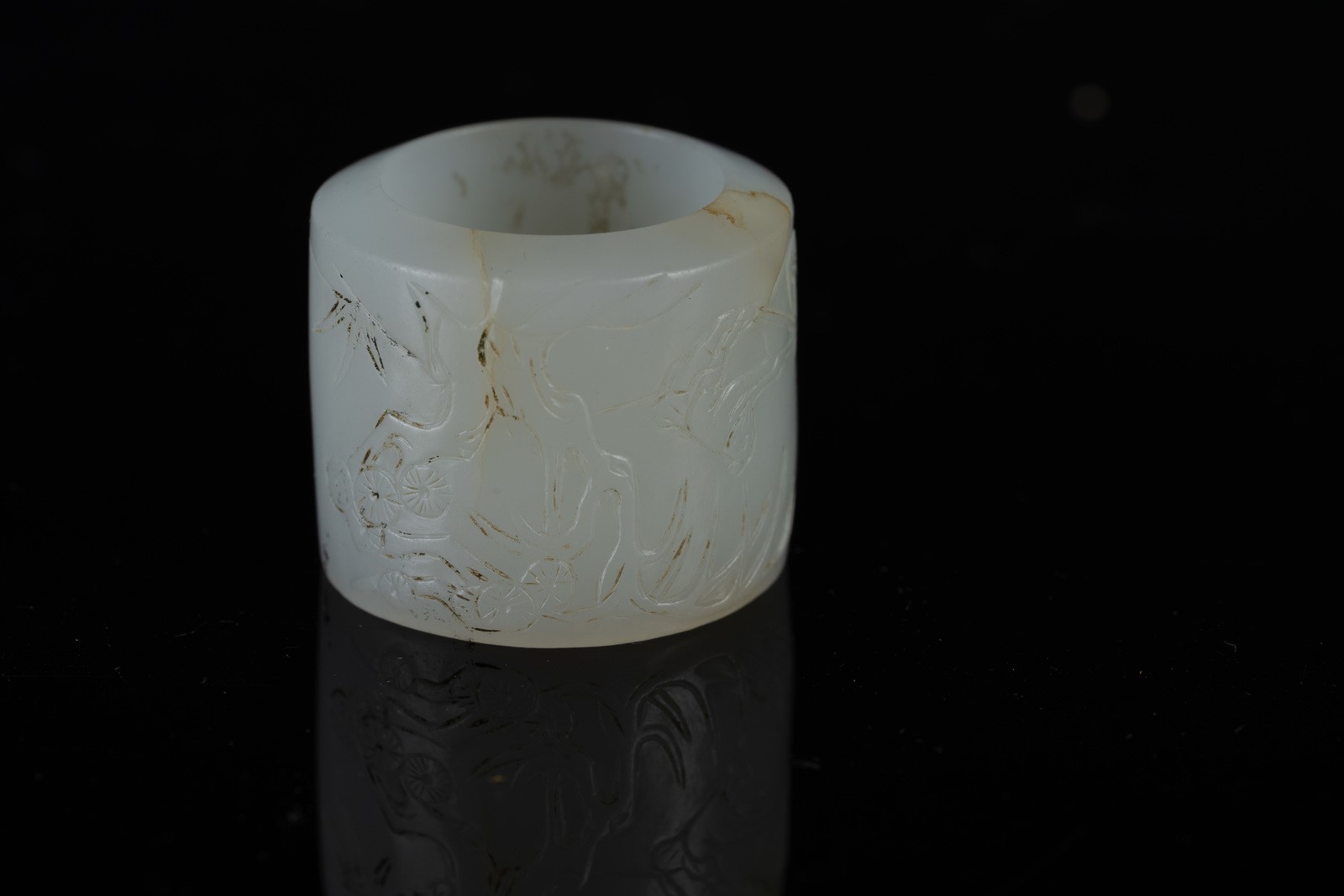 Arte Cinese A white jade archer ring engraved with vegetal motifs China, 19th century .