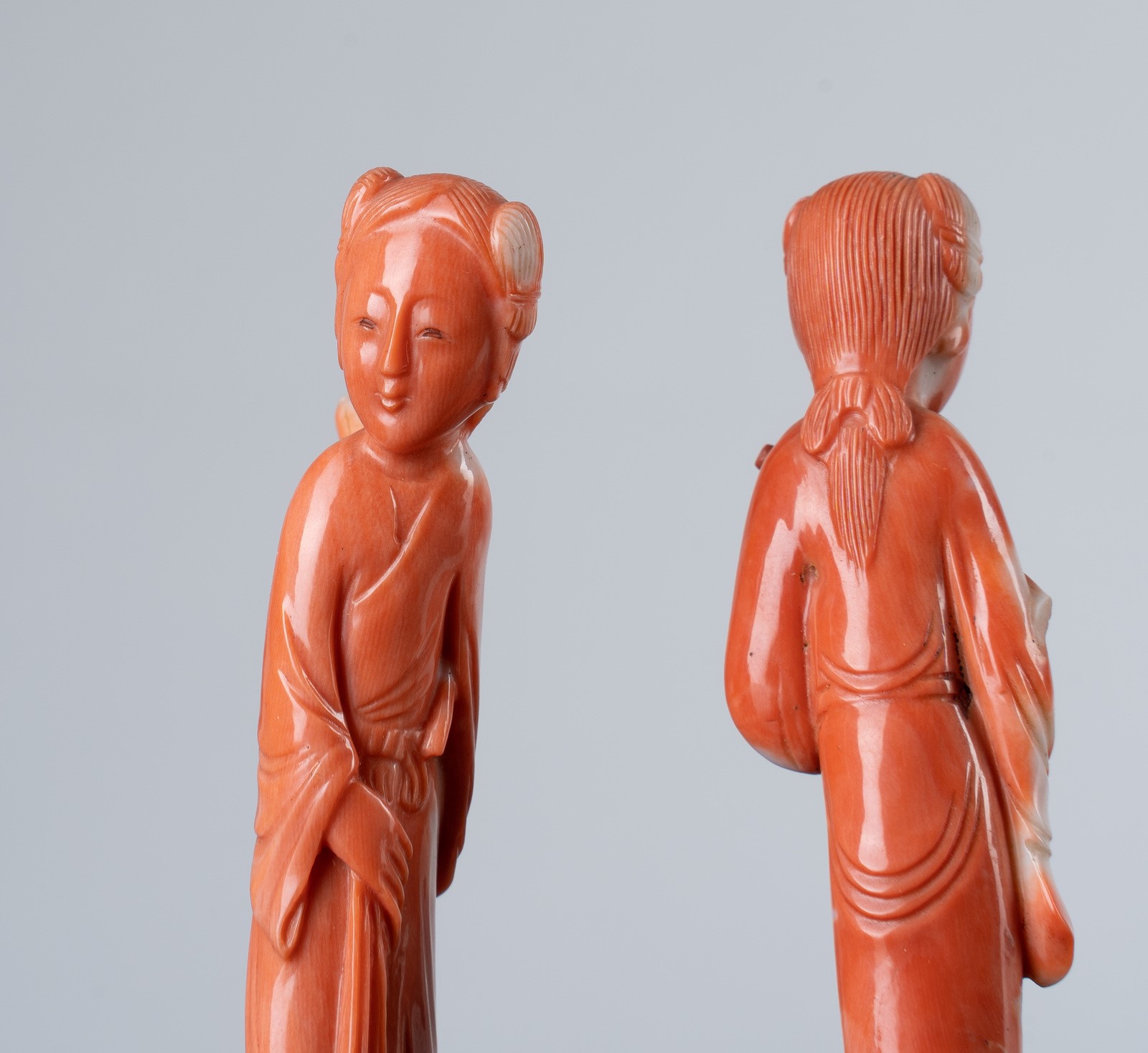 Arte Cinese A pair of small coral carving depicting femail characters China, 19th century .