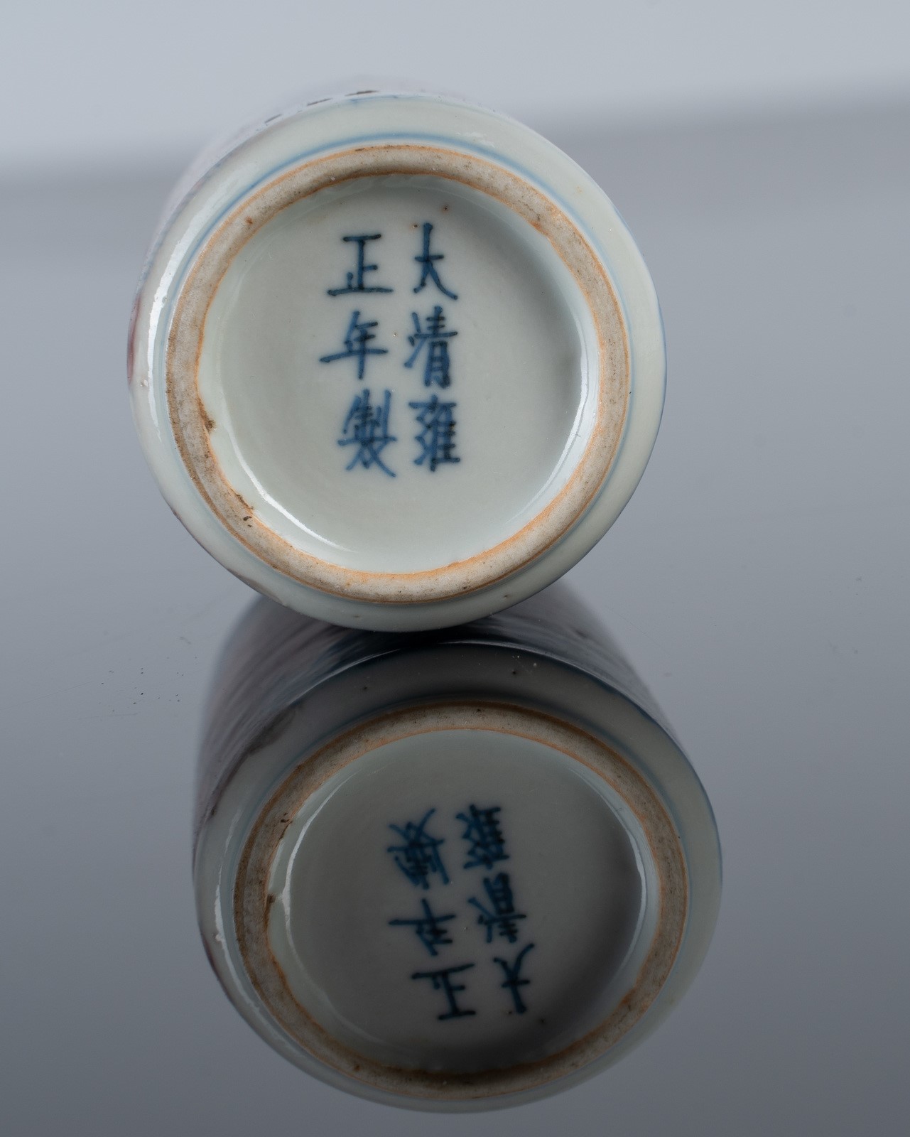 Lotto 188 | Arte Cinese A blue and white porcelain snuff bottle bearing a Yongzheng six character mark at the base China, 19th century .