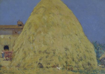 Giorgio Kienerk (Firenze, 1869 - Fauglia, 1948) Pagliaio, 1933 Olio su tavola, cm. 18,7x27 Firma e data in basso a sinistra. Sul verso: firma e titolo; timbro"Elenco G.K. n. 225".