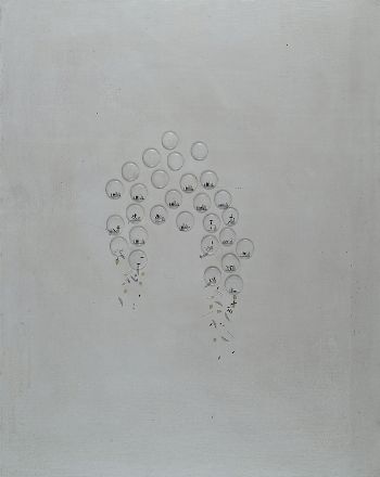 Tino Stefanoni (Lecce, 1937) Riflessi - 1965: ricordo sui prati, 1967 Tecnica mista e applicazioni su faesite, cm. 79x62 Firma, titolo e data sul verso.