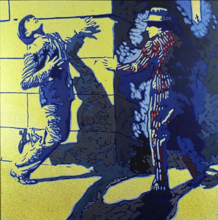 Giangiacomo Spadari (San Marino, 1938) Nemico pubblico (James Caguey) Acrilico su tela, cm. 103x103 Firmato e titolato sul verso.