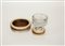 Set da tavolo con contenitore, portacenere e accendino in metallo. Anni '70, argento e legno (d cm 17)