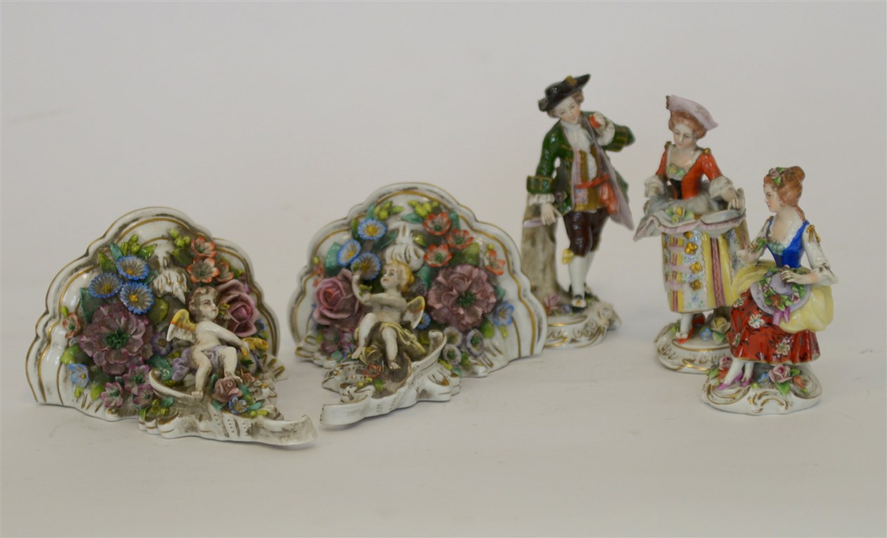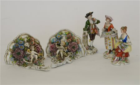 Manifatture diverse, lotto composto da due mensoline e tre statuine...