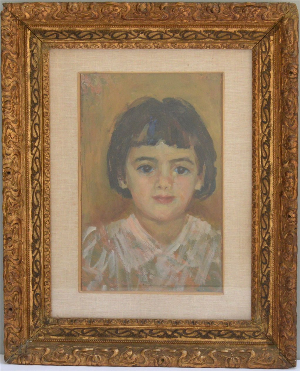 "Ritratto di bambina" olio su cartoncino (cm 33x22) Firmato in basso a sinistra. In cornice