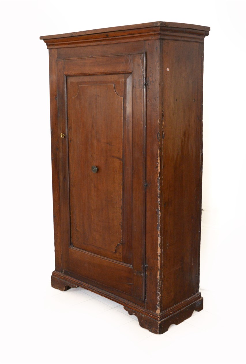 Armadietto in noce ad un'anta pannellata e riquadrata, piedi a mensola (cm 100x167x43) (difetti e mancanze)