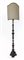 Grande candeliere tripode in legno intagliato, fine sec. XIX montato a luce elettrica in epoca posteriore, paralume in stoffa (difetti e mancanze)