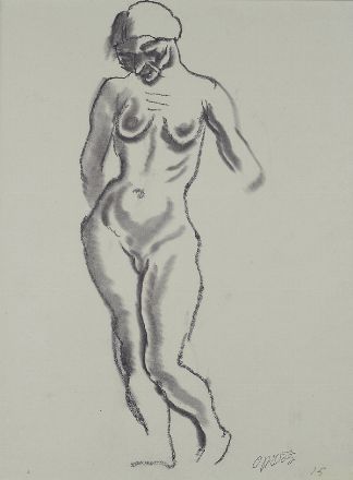 George Grosz (Berlino, 1893 - 1959) Nude, 1915 Carboncino, cm. 29,6x23 Firma...