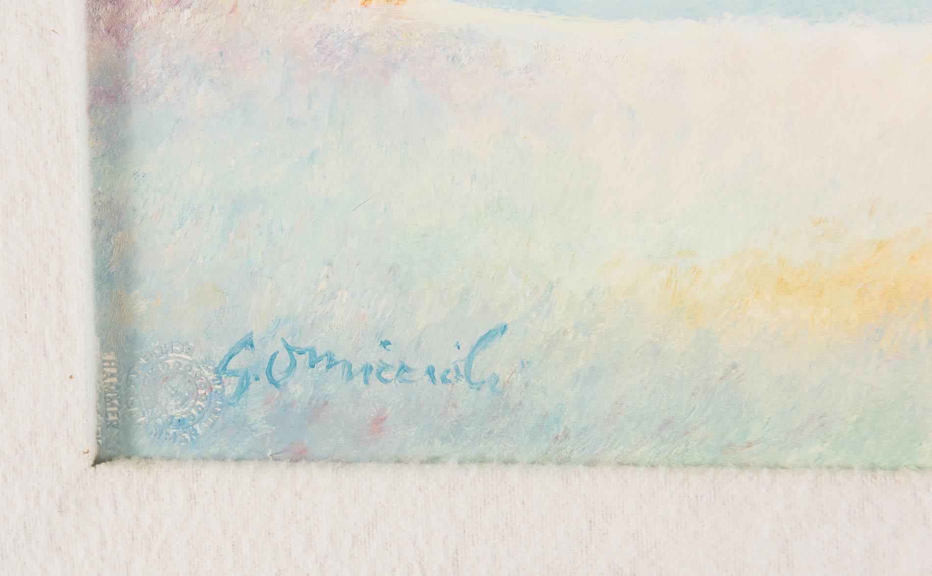 Olio su cartone, firmato in basso a sinistra G. Omiccioli, al retro reca iscrizione per autentica ‘è un mio dipinto autentico/G. Omiccioli’, H cm 36x51