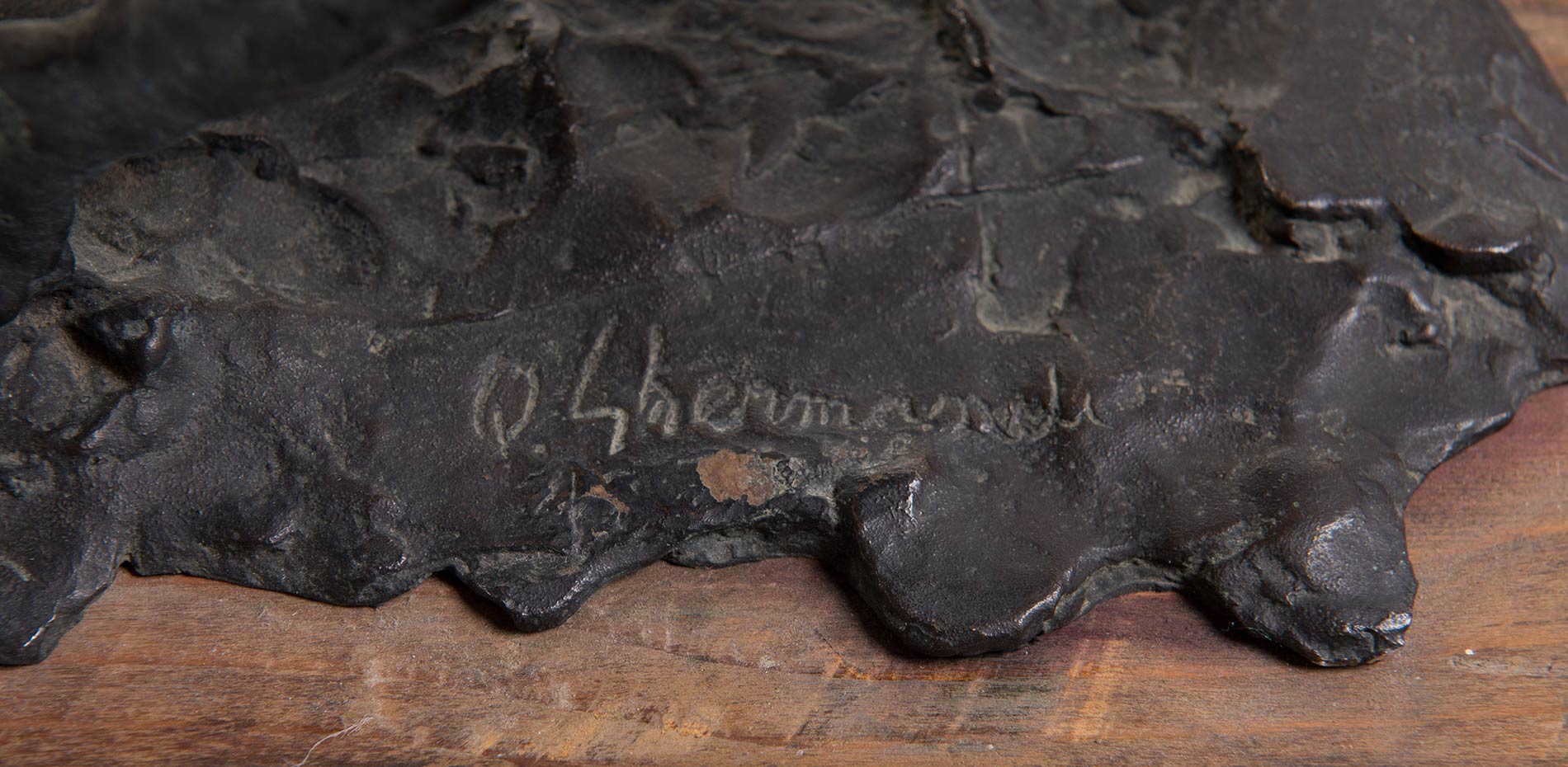 Scultura in bronzo, firmata Q. Ghermandi, numero di tiratura non leggibile, H cm 33x30x15