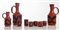 Composto da otto pezzi: due bottiglie grandi e una piccola, sei bicchieri di varie misure, bottiglie firmate sotto la base Pirro, H bottiglia cm 24 (lievi difetti)