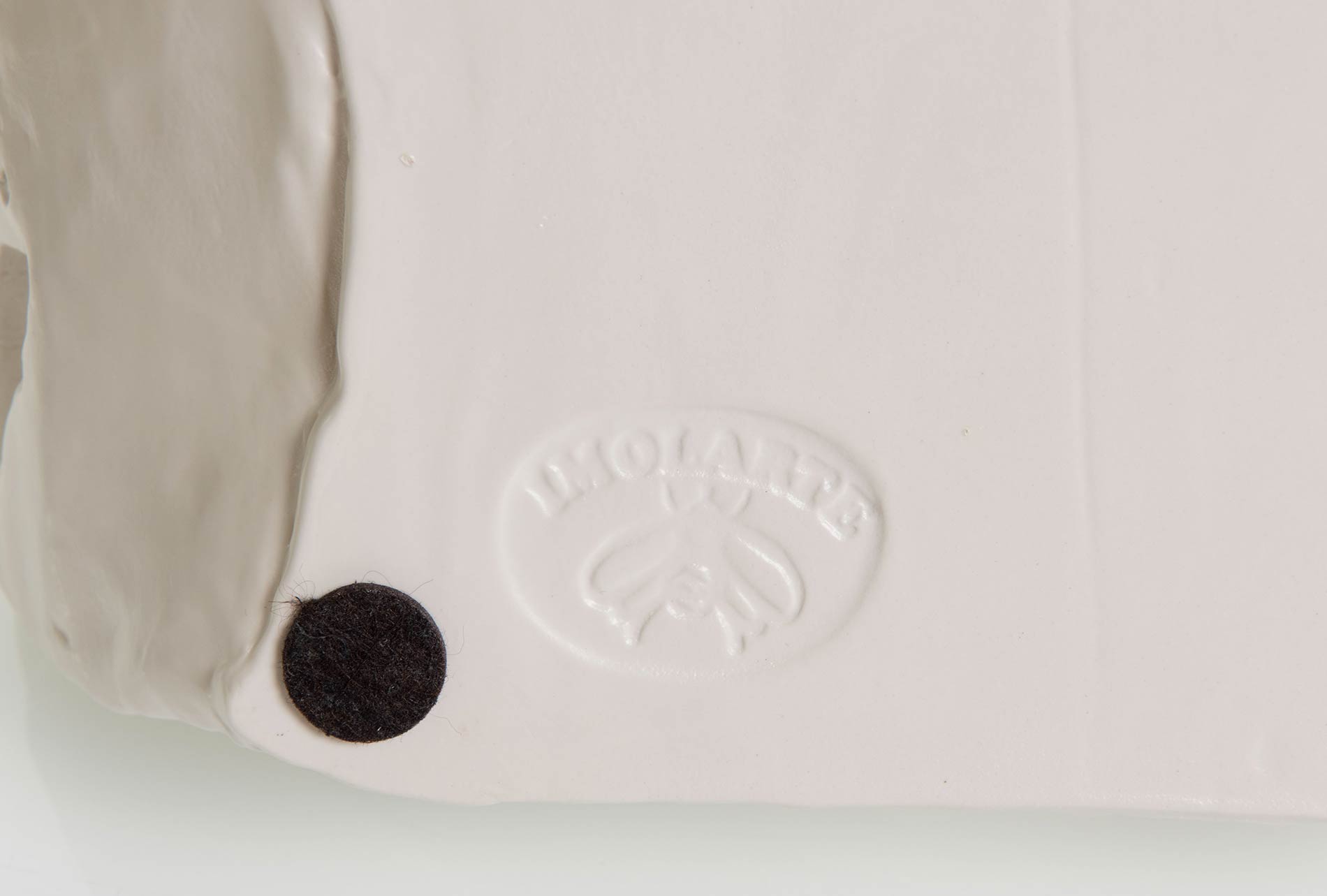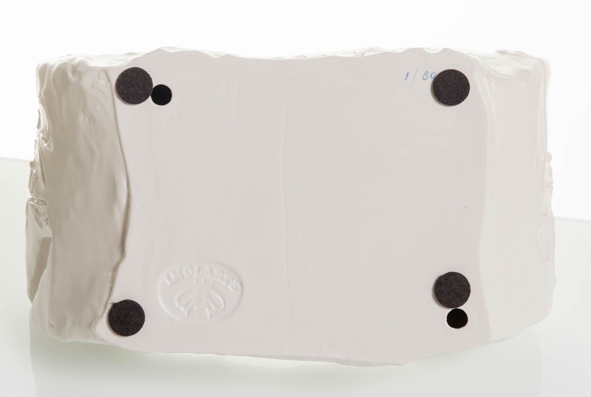 Scultura in ceramica policroma, firmata a lato, numero di tiratura 1/80, marchio sotto la base Imolarte – Cooperativa Ceramica d’Imola, cm 33.5x15x19.5