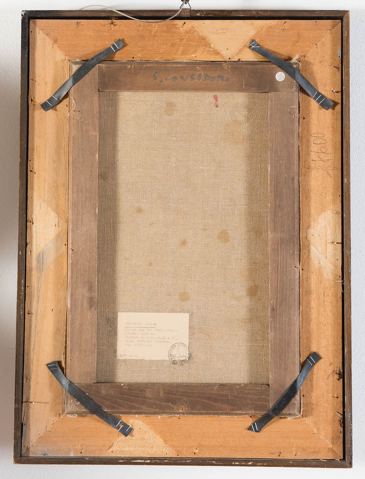 Tempera su carta applicata su tela, firmata in basso a destra F. Depero, in basso a sinistra timbro Galleria Museo Depero, H cm 47x31